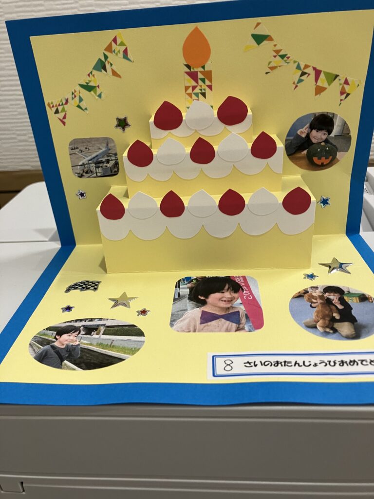 お誕生おめでとう 11月10日 12日に8歳の誕生日を迎えます。すずかけでは、2回目の誕生日となりました。 お友だちから誕生日カードを受け取りました。8歳になったら、何をしたいですか。 みのむし作り1 11月8日 みのむし作り2 11月10日