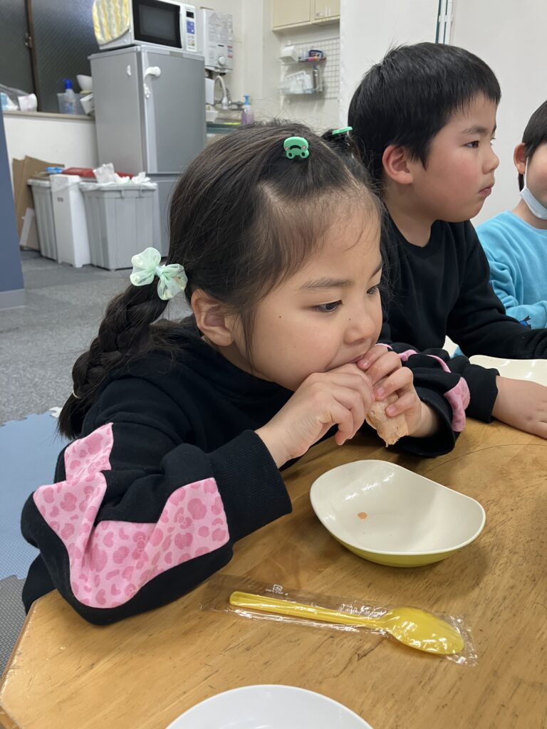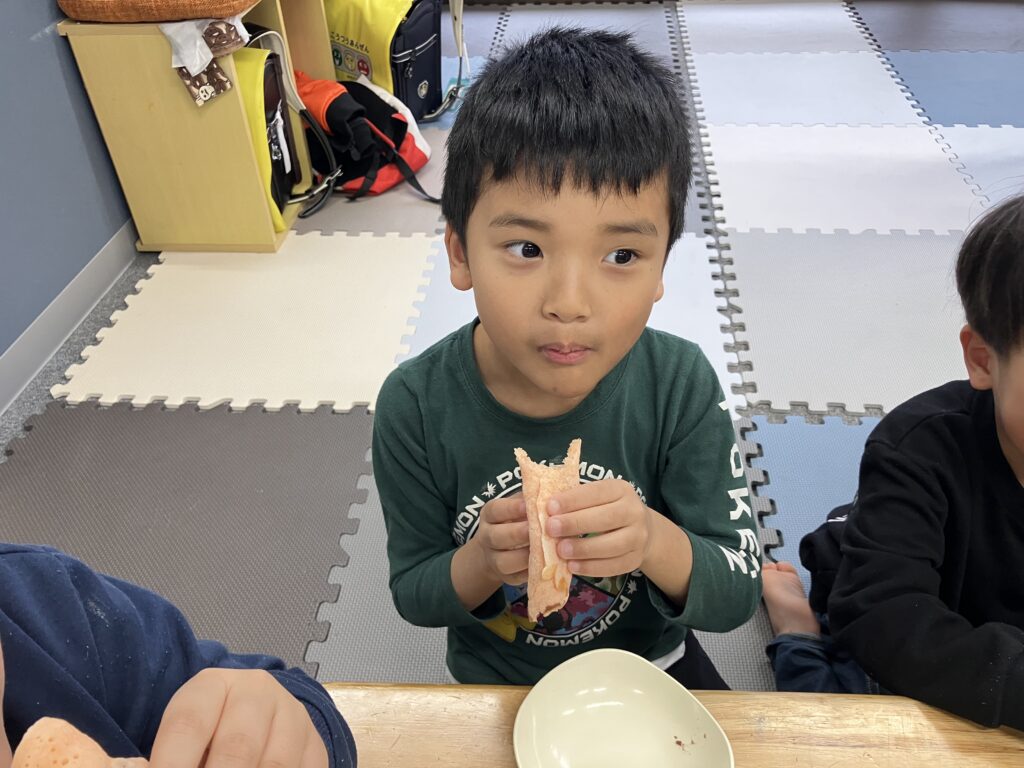 あんこを挟んで、食べました。感想は、美味しいかったそうです。