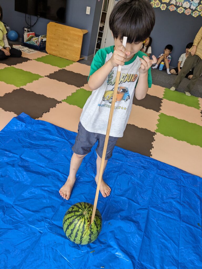 すいかは、三浦市の農家さんから頂きました。初めてのすいか割りになるかなぁ。
