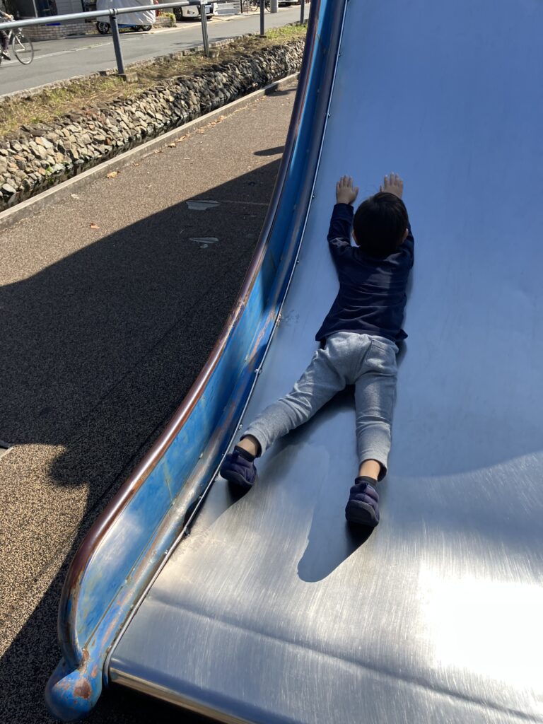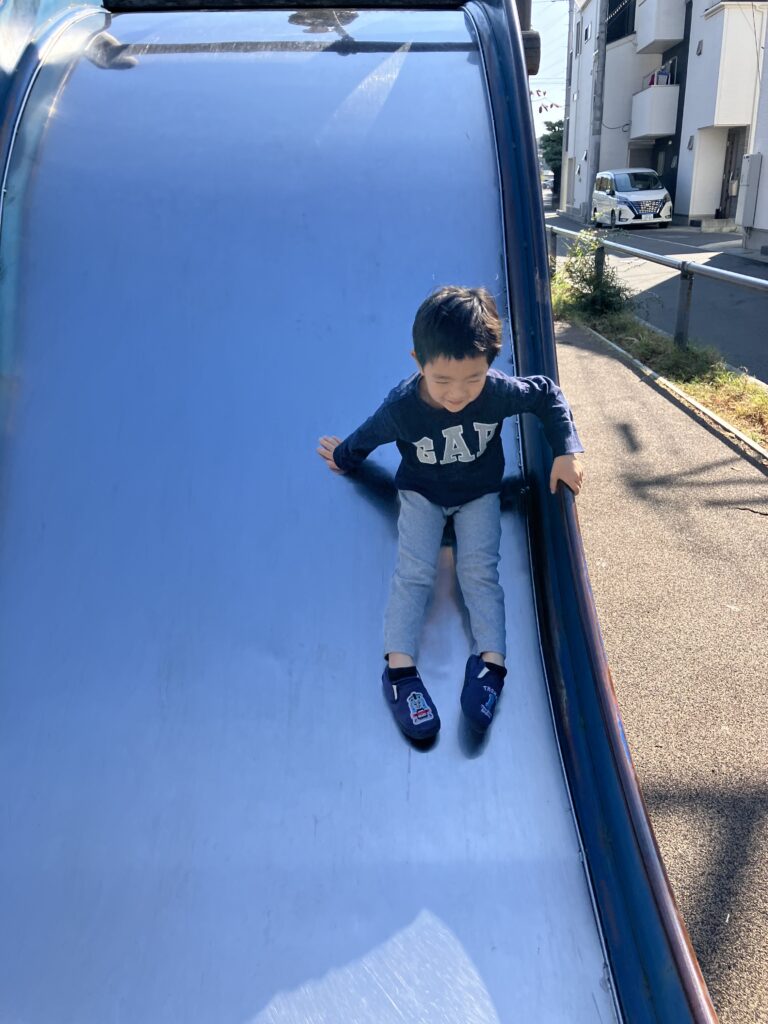 せせらぎ遊歩道散歩 11月1日(午前) 寝不足気味なので、一時、アパンマンと一緒に寝ました。 せせらぎ遊歩道の滑り台 後ろ向きに滑ってみました。 寝起きの滑り台です。 お母さん、お弁当作ってくれてありがとう。いただきまーす。 ハロウィンウォーク 2 10月30日 お誕生日おめでとう 11月2日