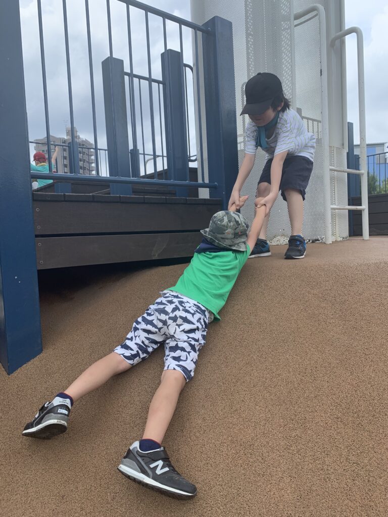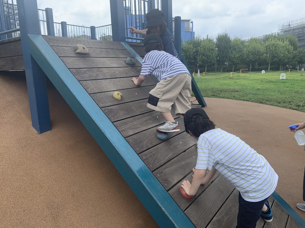 みどりの大広場へ(溝の口)8月15日(午前) マンションの公園です。 救出中。 お兄さんと一緒に登りました。ありがとう 緑の絨毯を駆け回りました。 三人で滑りました。 8月14日の様子(午後) 水鉄砲再開 8月16日(午前)