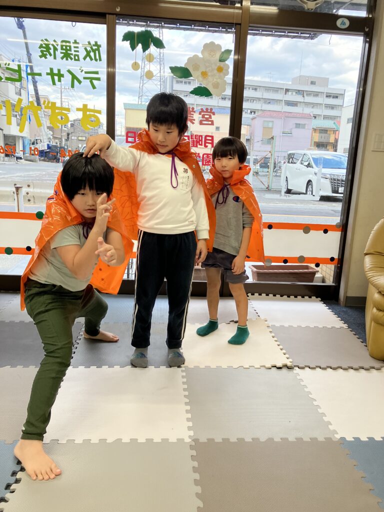 マントを着るのを忘れて、おばけと戦いました。