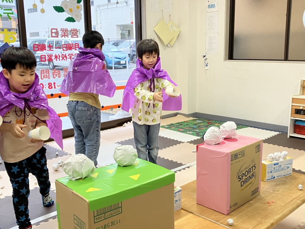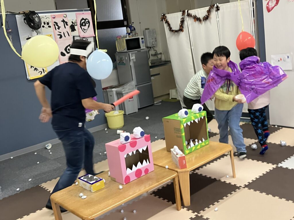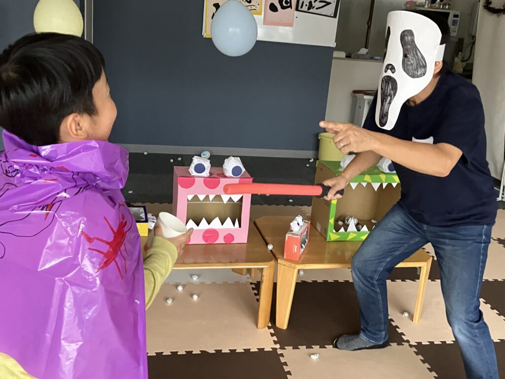 遊んでいるところにお化けが乱入