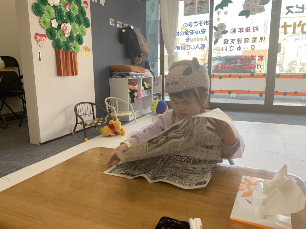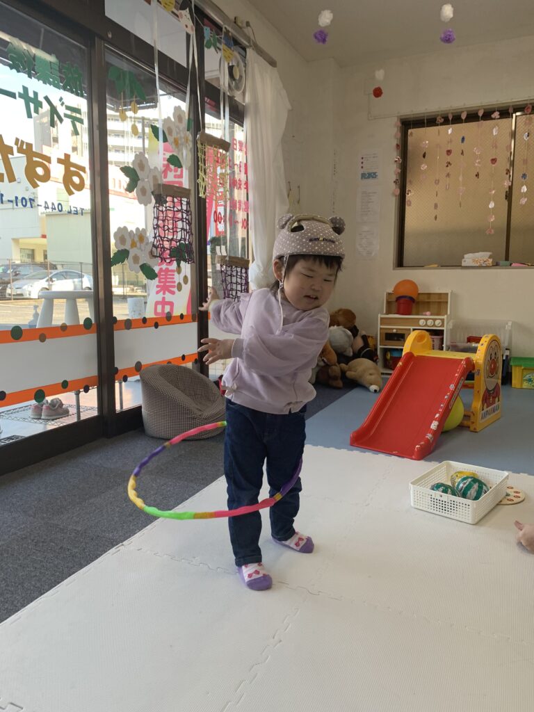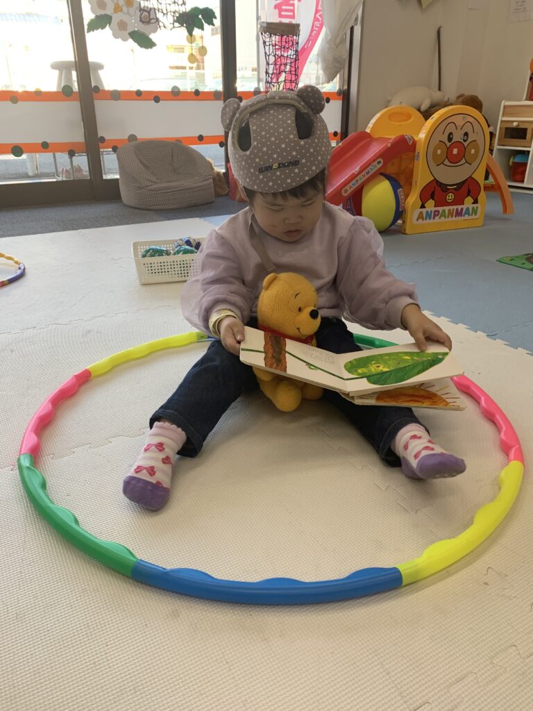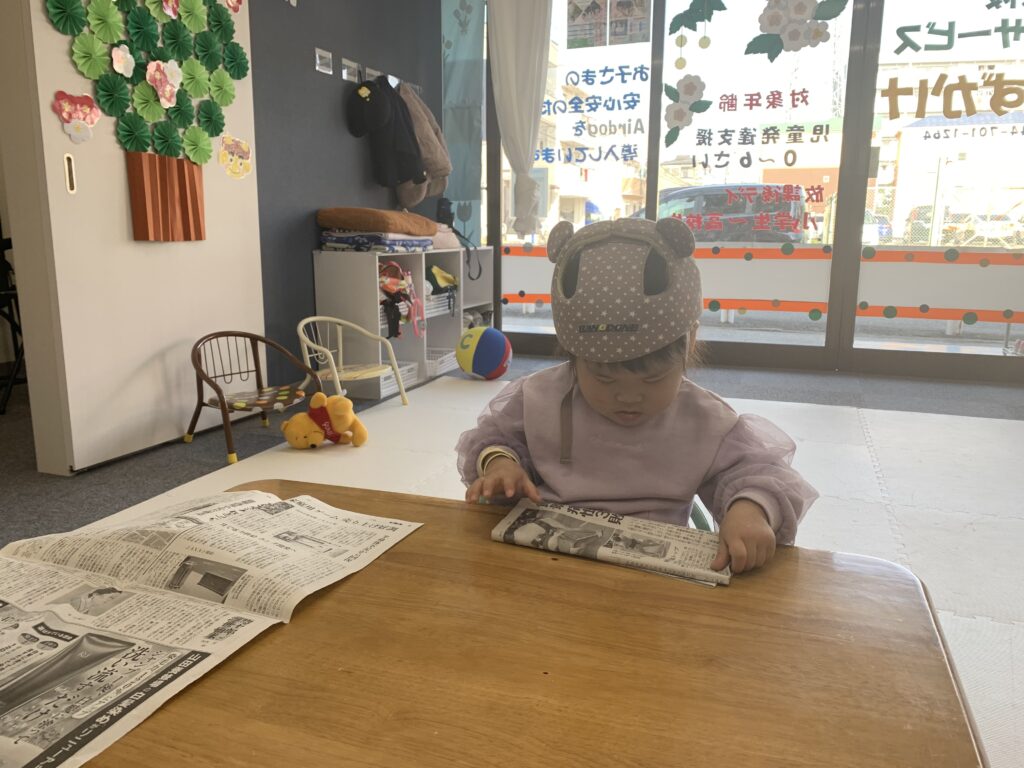 フラフープ練習中 2月20日 何度も何度も、繰り返して頑張っていました。足腰がしっかりしてきました。 新聞紙たたみを手伝ってくれています。いつも、綺麗に折ってくれます。ありがとう。 プーさんに絵本を読んでいます。 ビー玉アート作り3 2月20日 おやつを買いました。2月21日