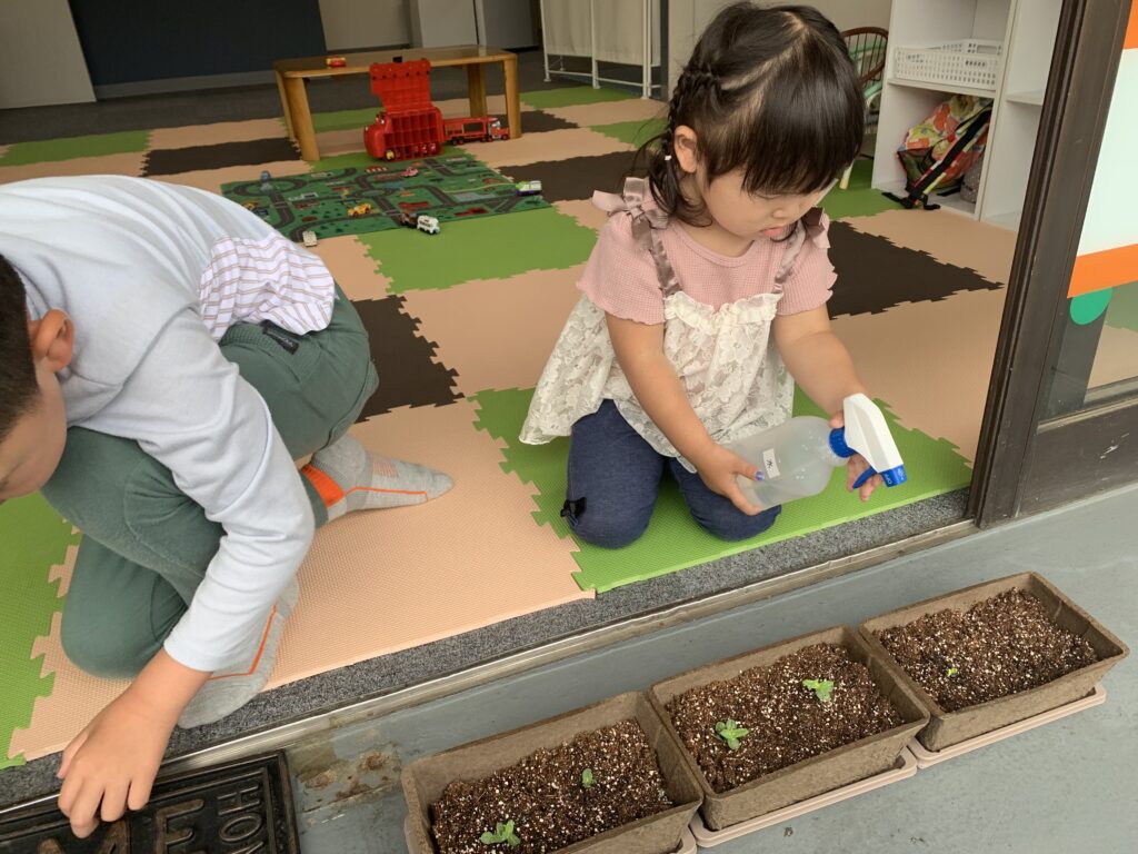 スプレーで水やりしました。