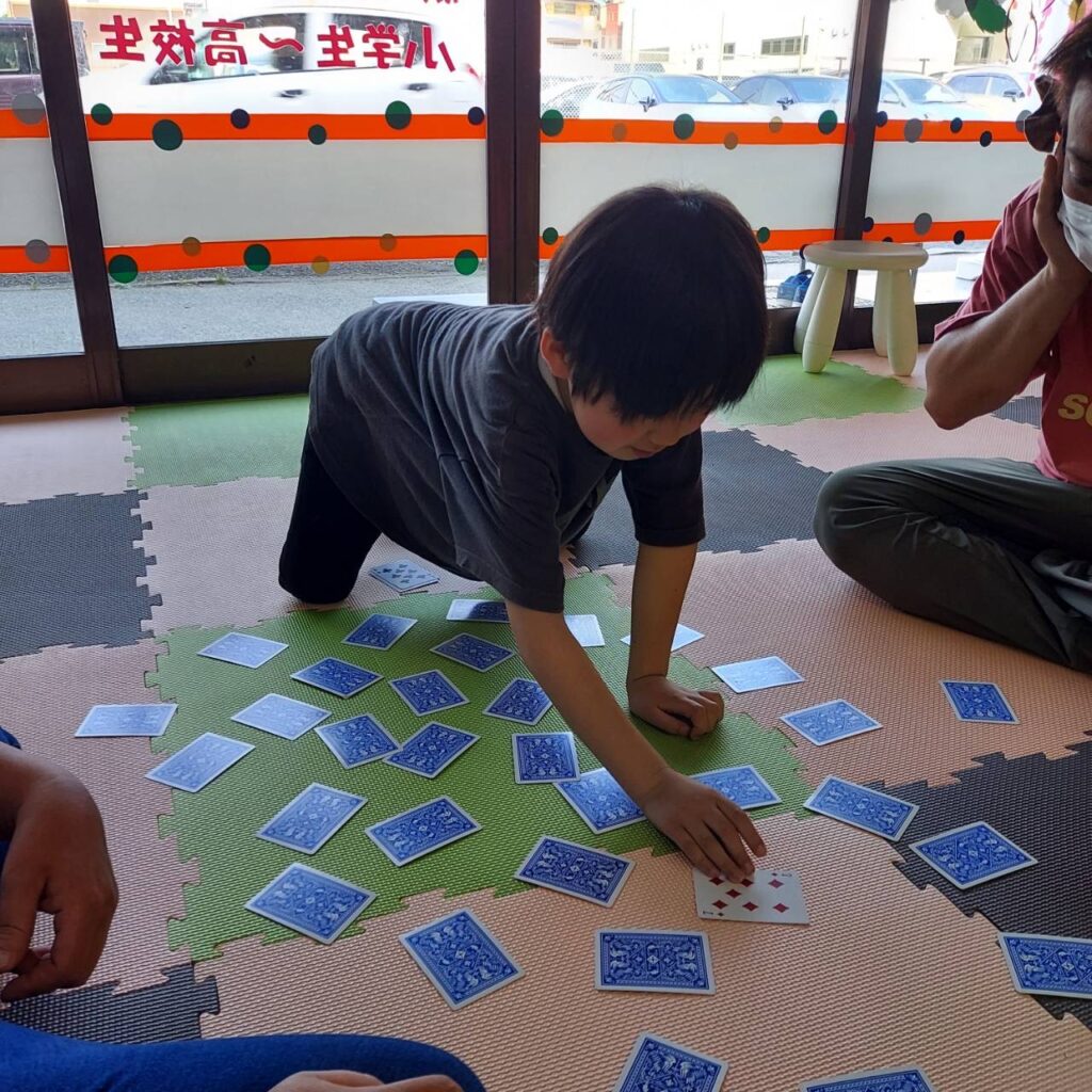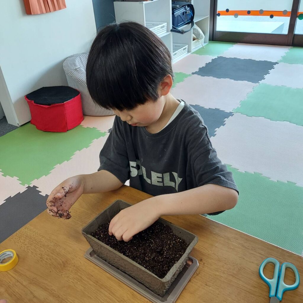ミニひまわり栽培2 5月18日 用土に水を入れます。 用土に水がいくようにもみます。 タネを植えます。 水が与えて、終わり。 スタッフとトランプ。返したカードを覚えておくんだよ。誰が多く、カードを取りました。 ミニひまわり栽培 1 5月17日 5月19日の様子(トランプ)