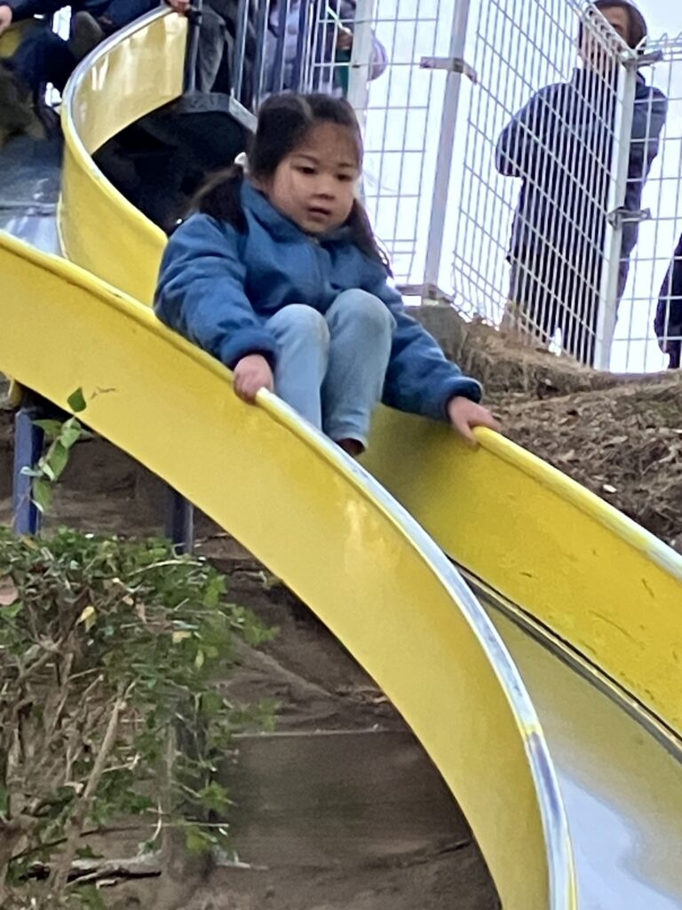 久末城法谷公園へ 12月18日 滑り台に夢中になりました。 滑った後、この階段を上がります。かなりの運動量になりました。 仲良く滑り台 落ち葉と遊びました。 落ち葉に足がとられました。 崖を下りました。 クリスマスベル作り 中にあるのは、飴です。 12月17日の様子 12月19日の様子