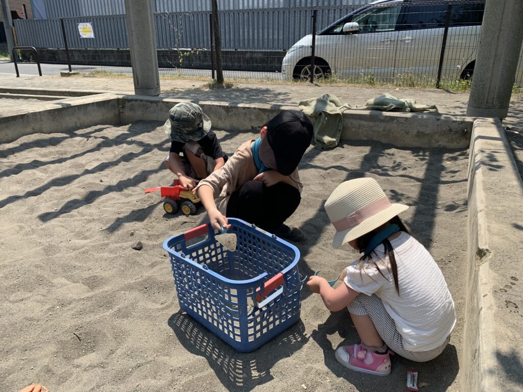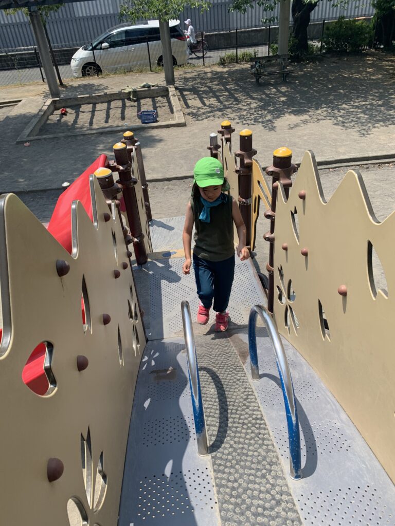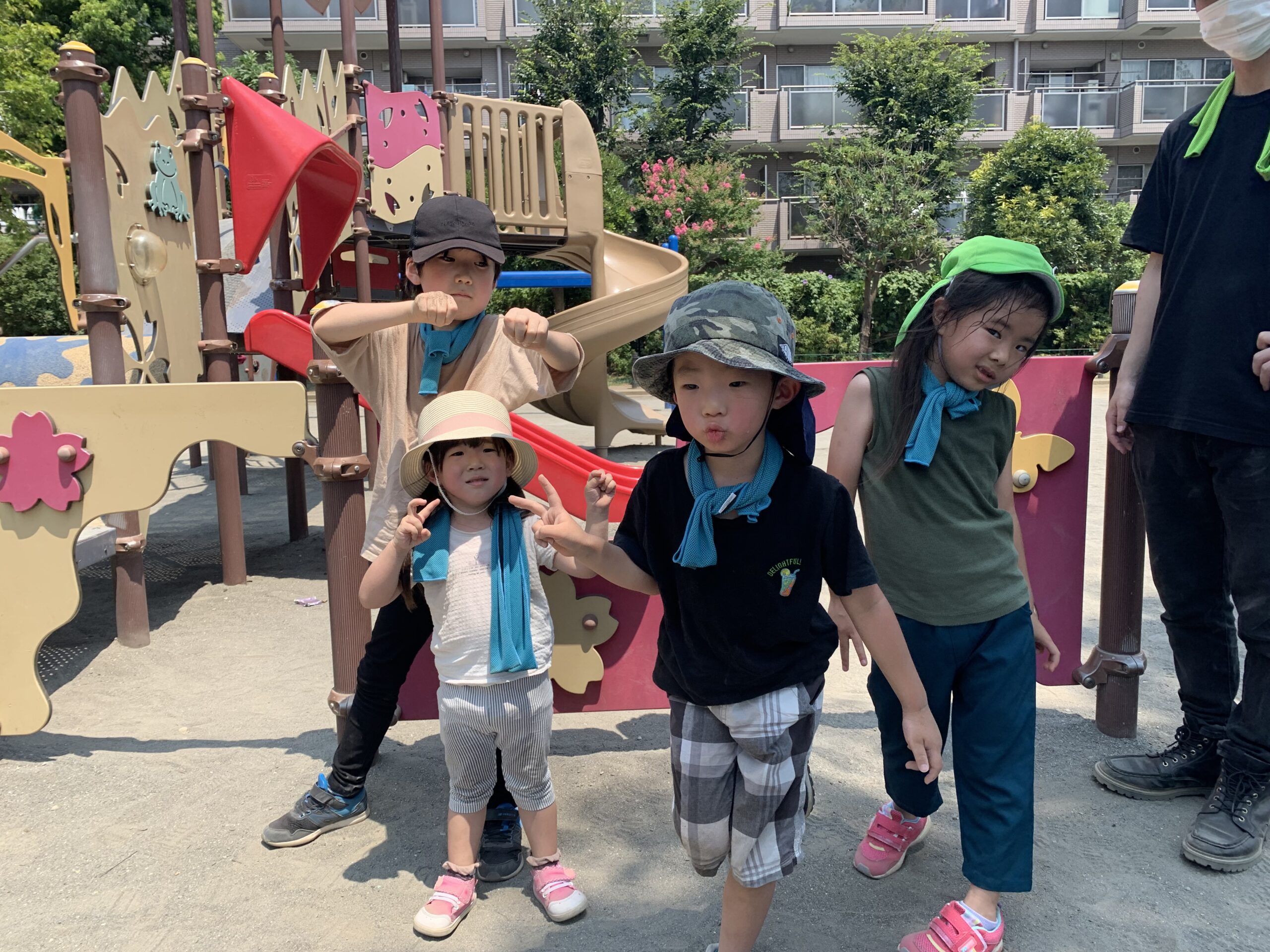 遊びの途中は、水分補給します。遊び中は、スプレーでミストが降ってきます。