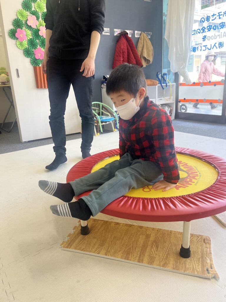 トランポリンからジャンプして、外に出ることを繰り返していました。