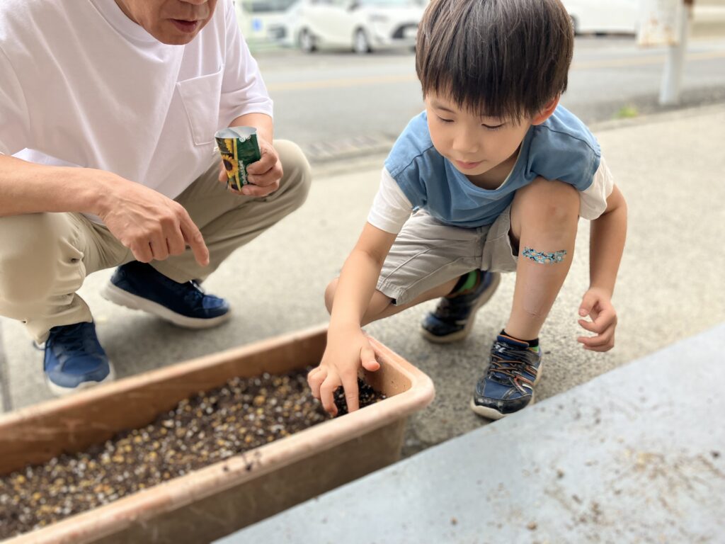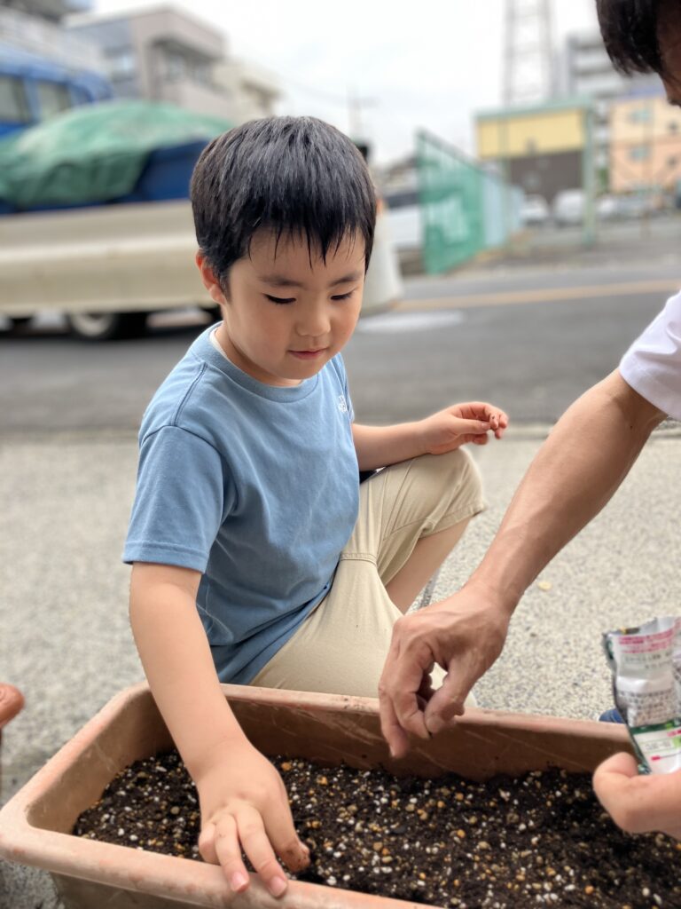 向日葵の種を植えました。5月16日 第一関節まで穴を開けてね。 種が小さいから穴に入れてね。 いい笑顔ですね。土の感触は、どうでしたか。 夏までみんなで、水やりをしましょうね。 三ッ池公園へ 3月27日 生田緑地(バラ園)へ行きました。5月21日 午前