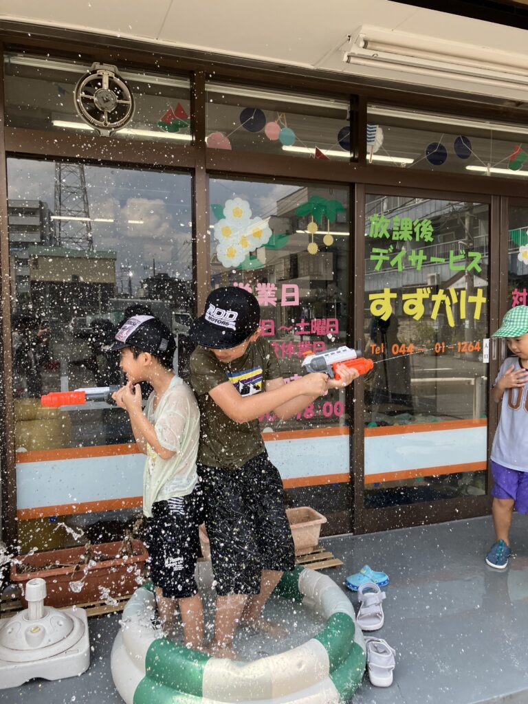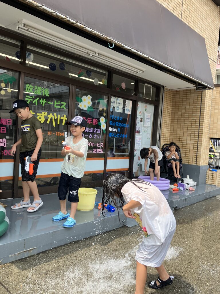 夏休み最後の水合戦 8月25日 今日ですずかけの夏休み期間が終わりになります。思い切り遊びましょう。 かっこいいね。 攻撃を受けています。 楽しかった夏休みも終わりですね。みんなは、どんな思い出があるかなぁ。明日から、元気に学校に行きましょう。 水を一杯浴びましょう。8月22日 今日から学校が始まりました。 8月26日