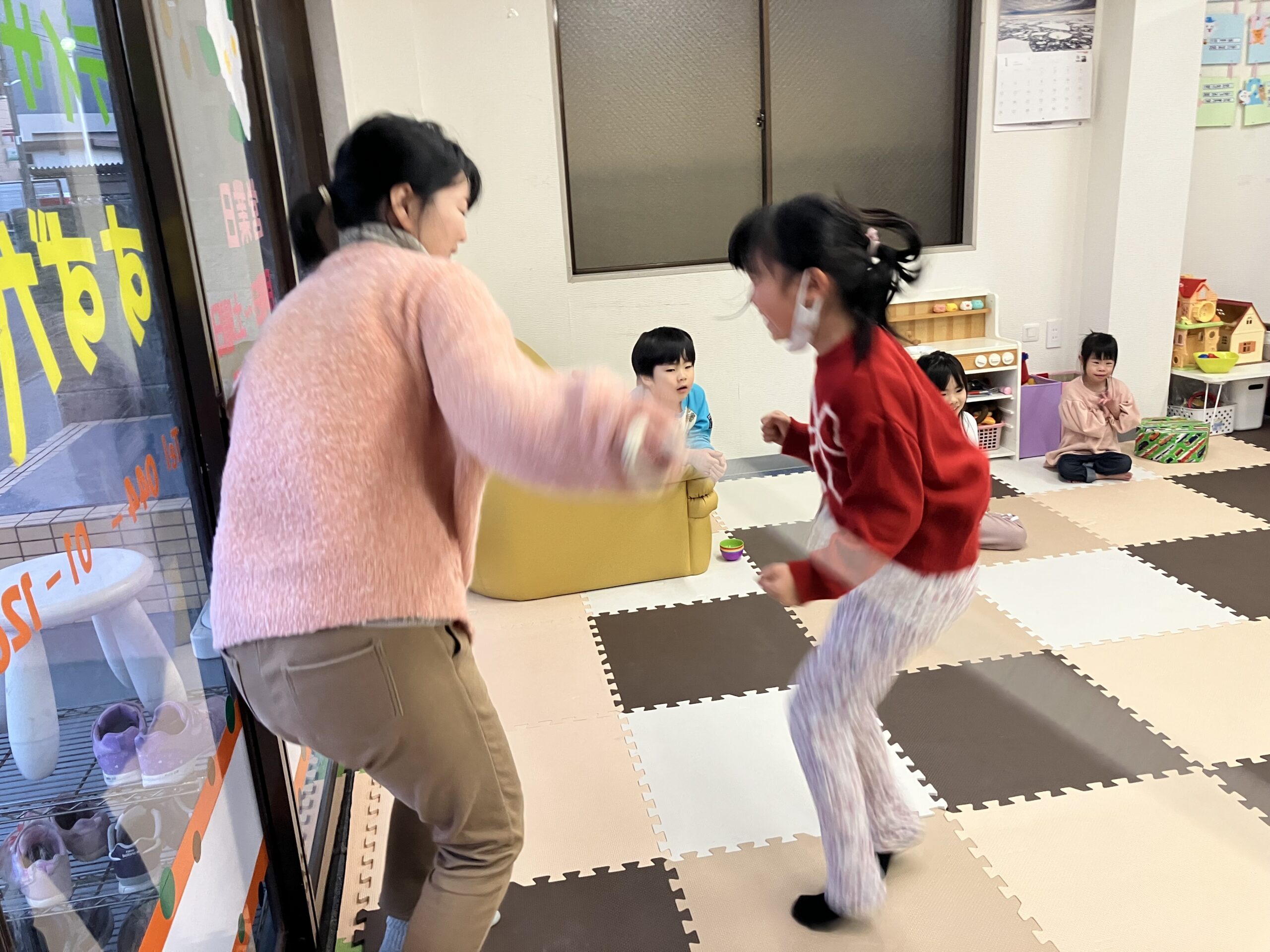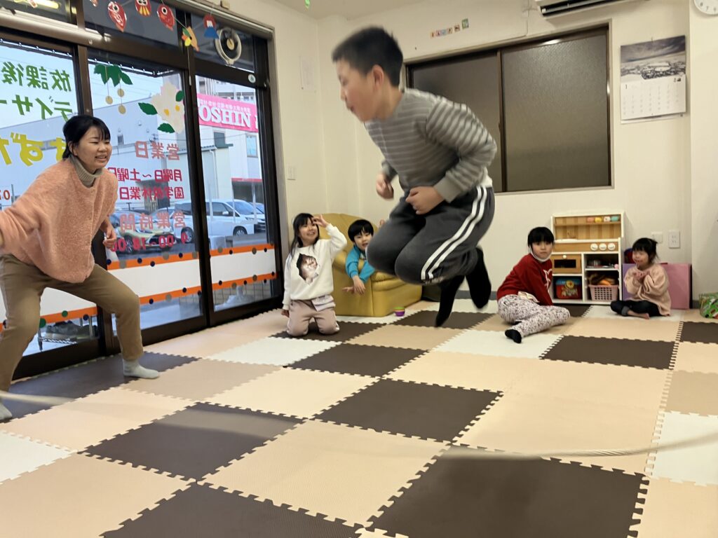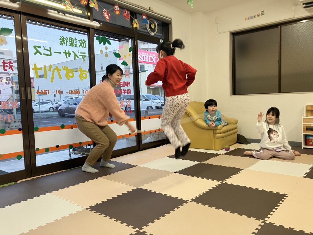 大繩飛び 1月17日 30回跳びました。 昨年は、跳ぶ事が出来ませんでしたが、4回跳べるようになりました。 10回跳びました。お友達が多く跳んでいるので、泣いて悔しがっていました。次は、頑張ろうね。 女子の綱引き。 大縄跳び復活 1月16日 1月21日の様子
