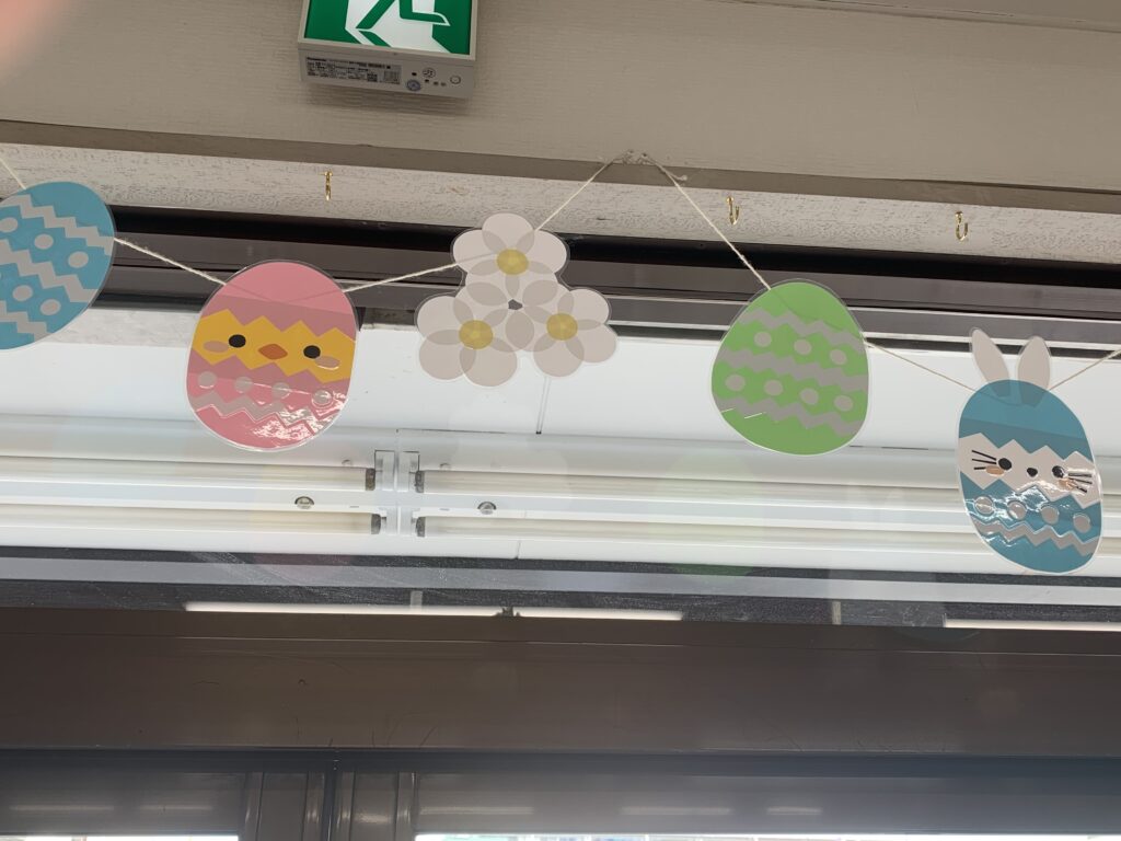 イースターの飾り付けに模様替えしました。色々な卵がいます。