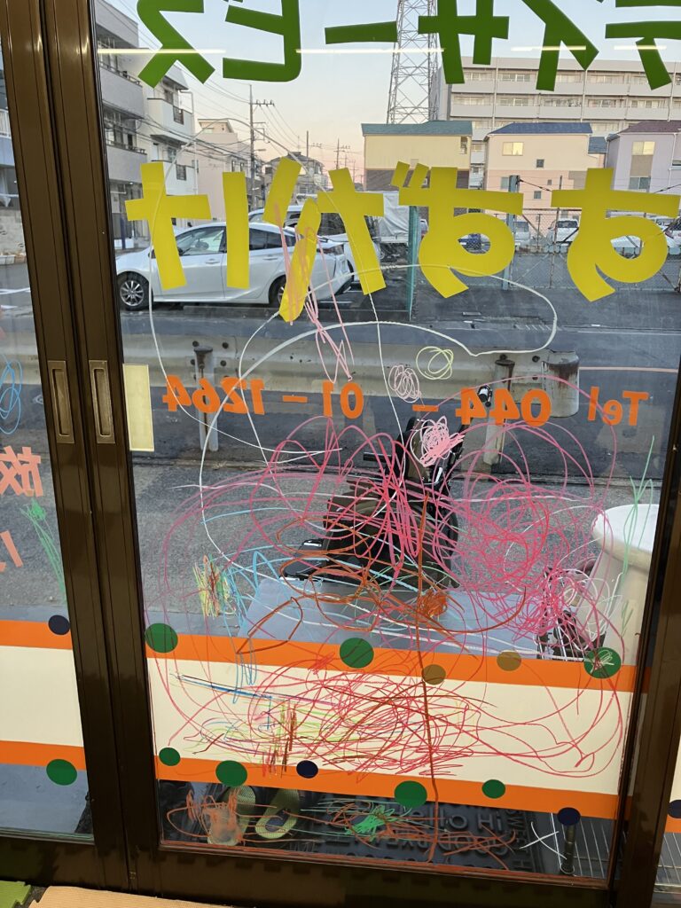 ガラスに落書きをしました。