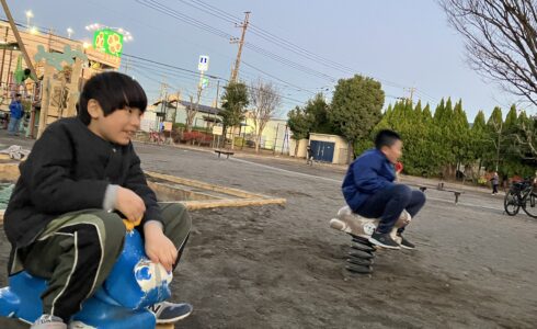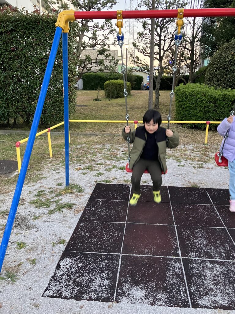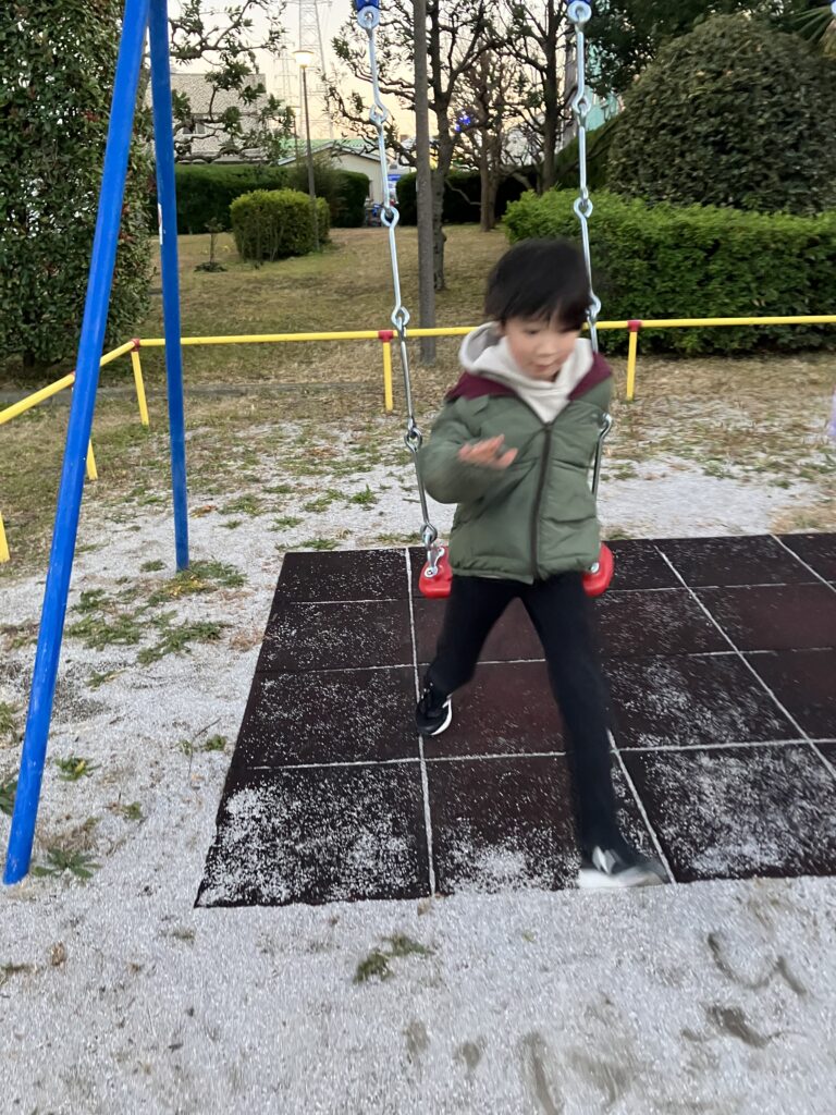 ブランコから飛び降りに挑戦