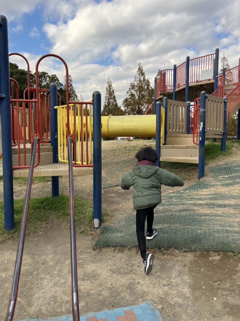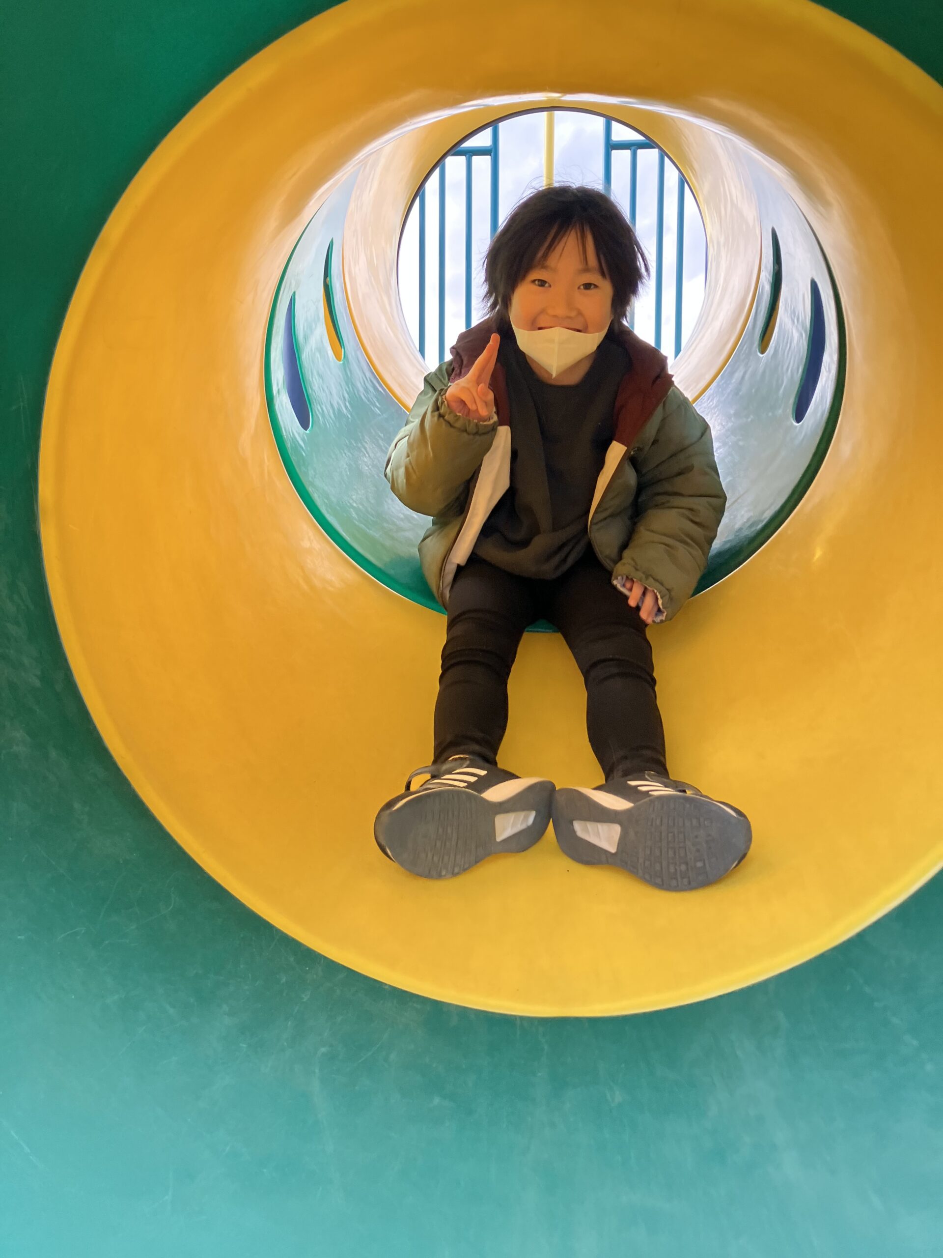 パイプの滑り台なので、お尻が痛いです。