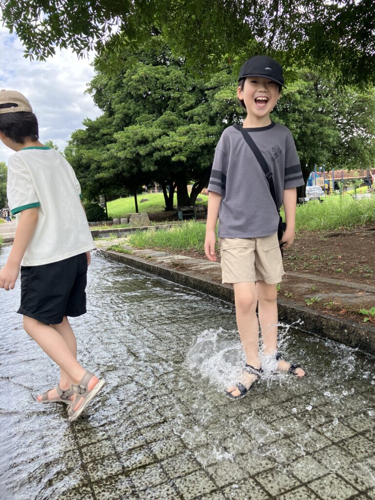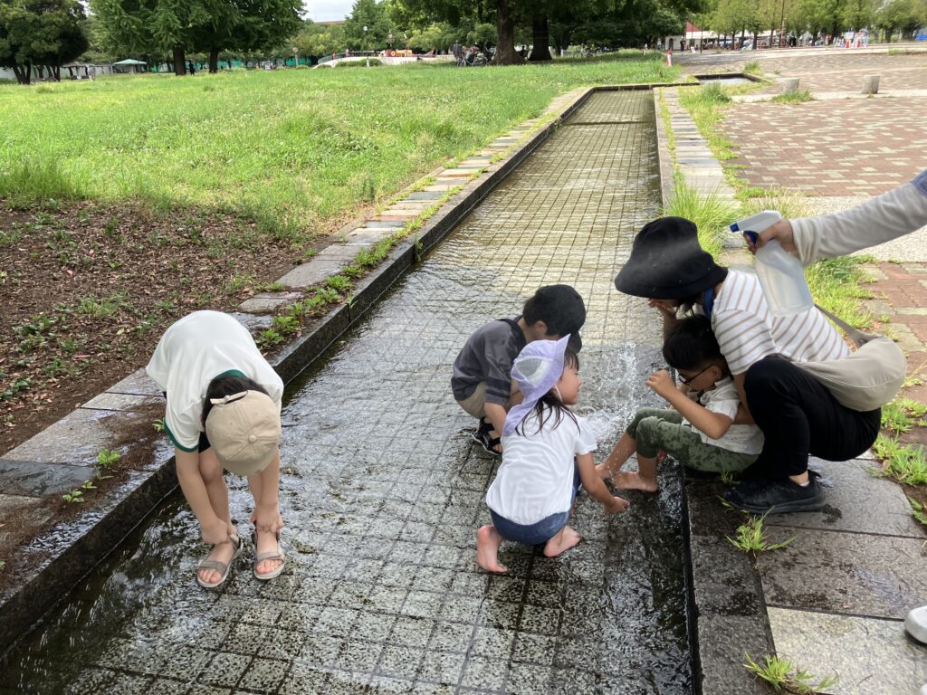 予定していなかった水遊びが始まりました。