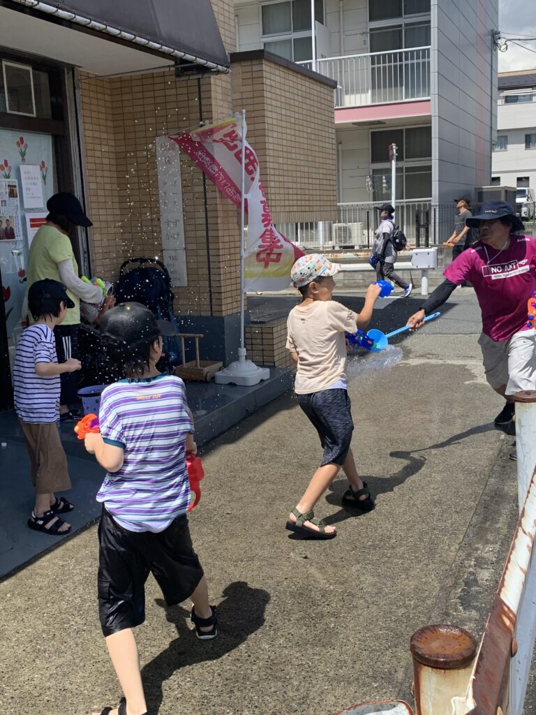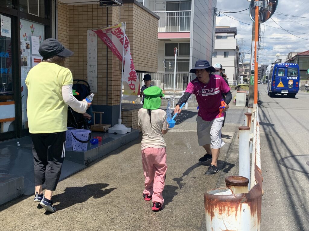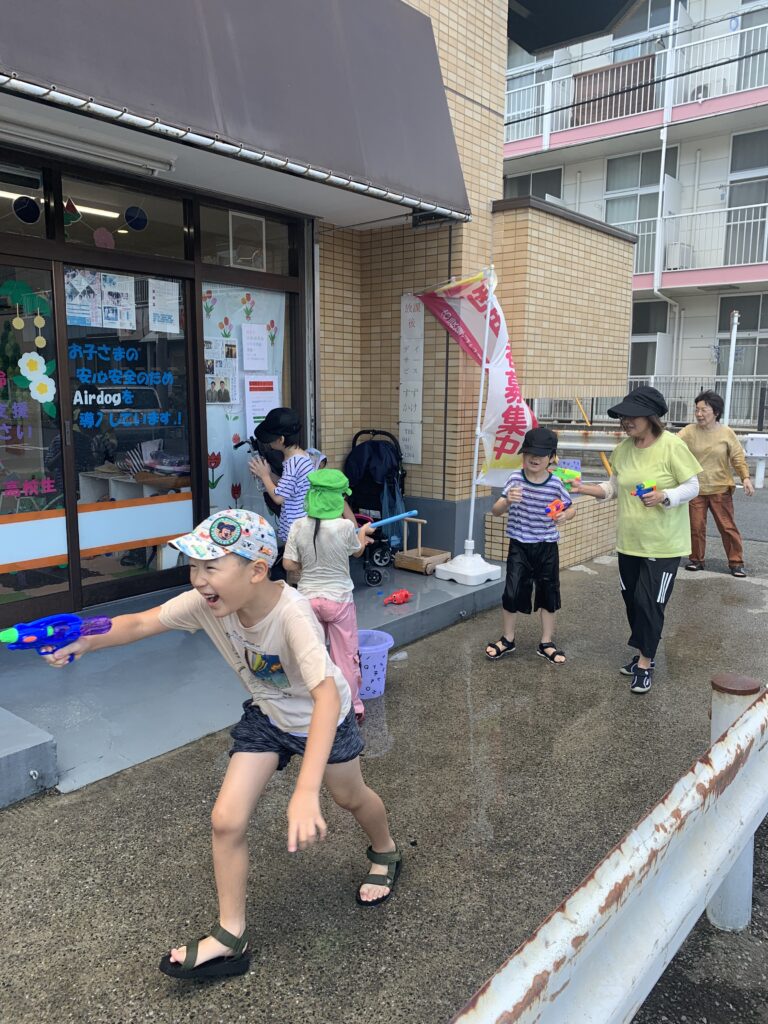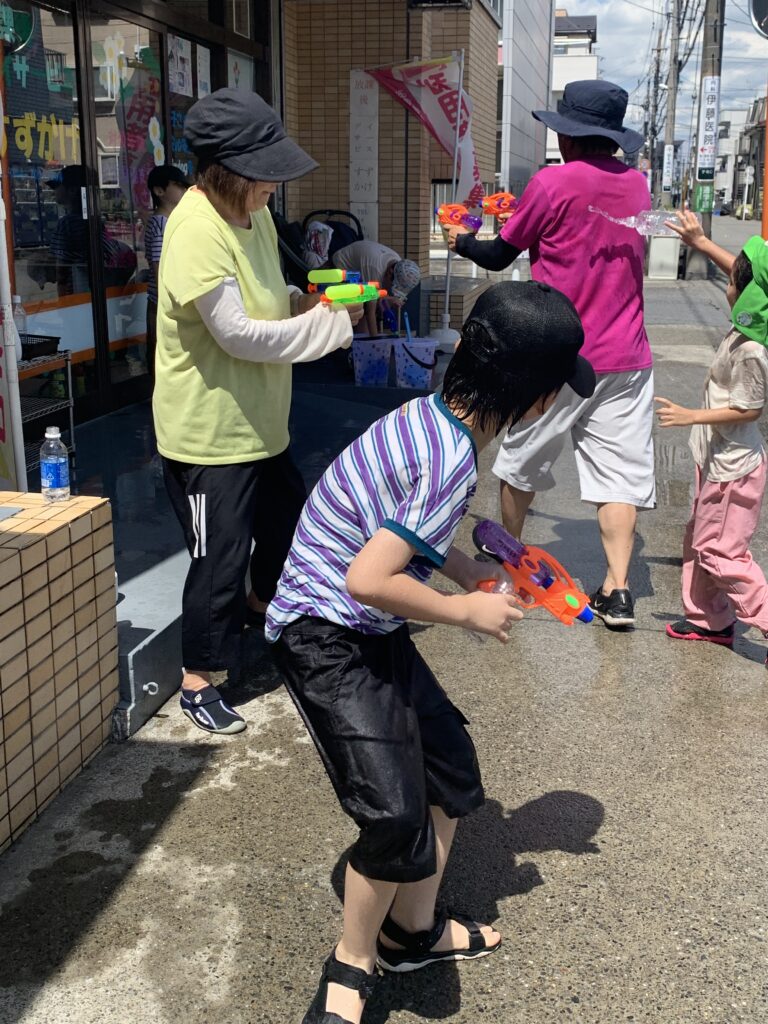 激しい水鉄砲決戦がありました。8月3日(午後)