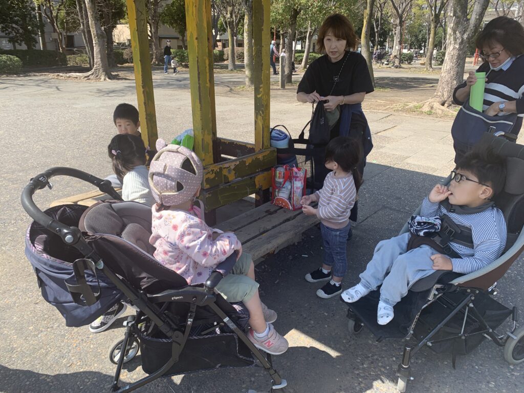 午前中は、幼児組5名で公園に遊ぶに来ました。遊んでいる合間に水分補給をします。