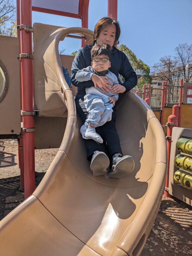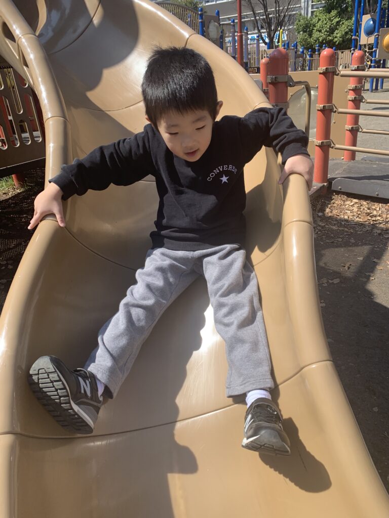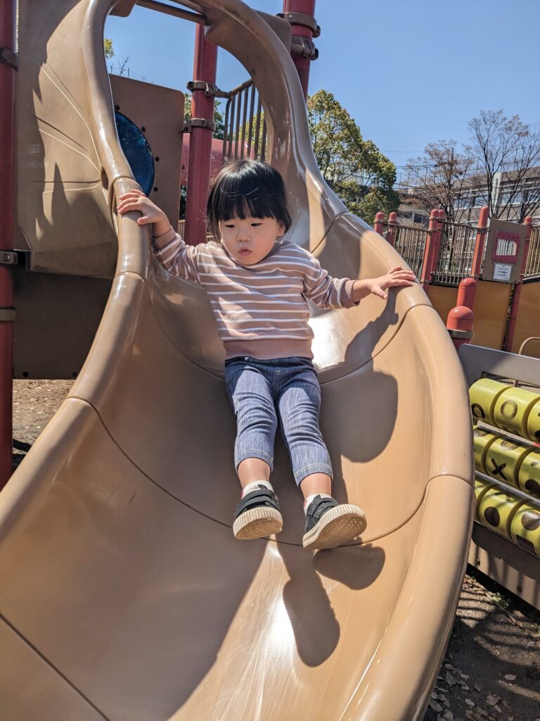 大好きな滑り台です。昨年の夏以来の橘公園になります。