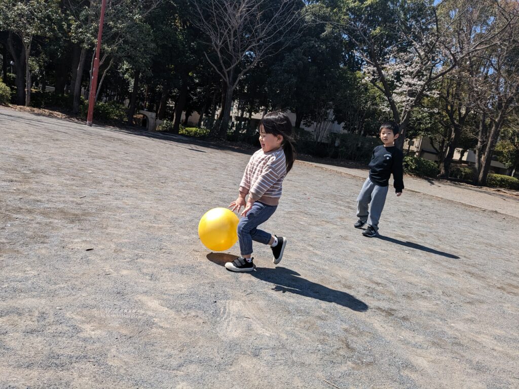 広場を駆けずり回っています。ボールをさばきが上手ですね。