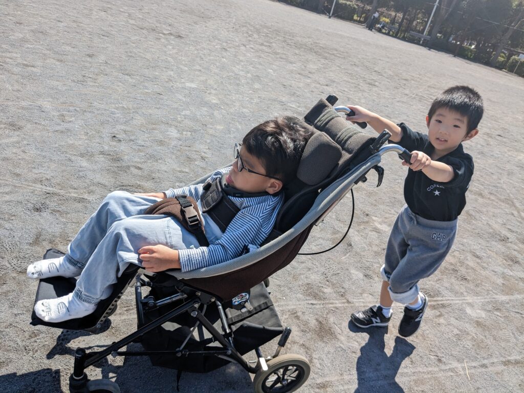 バギーを押して、散歩してくれています。ありがとう。