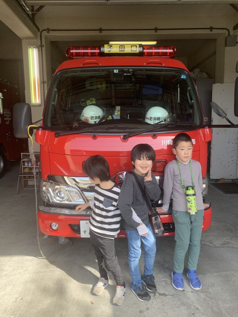 公園に行く途中で、消防出張所に寄りました。