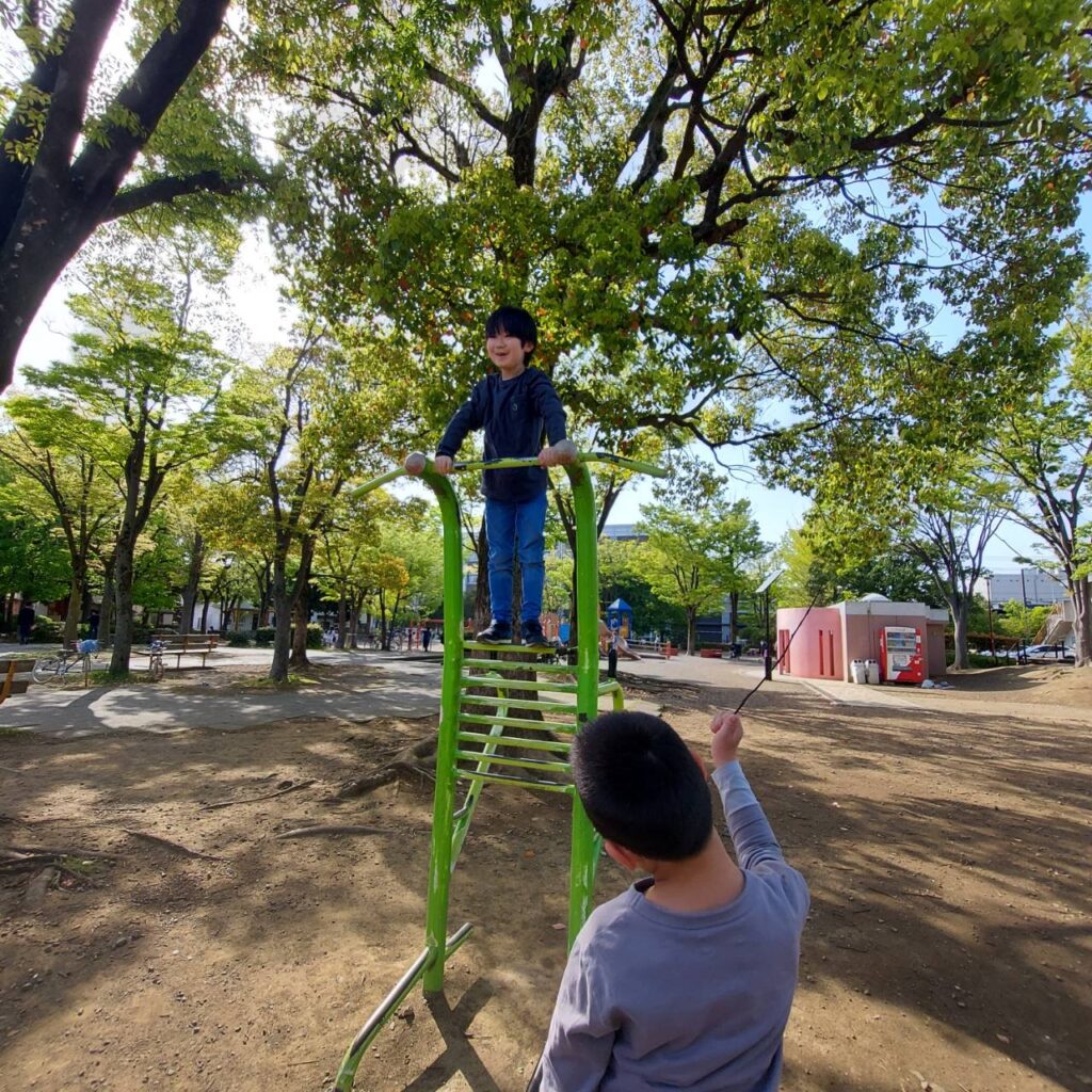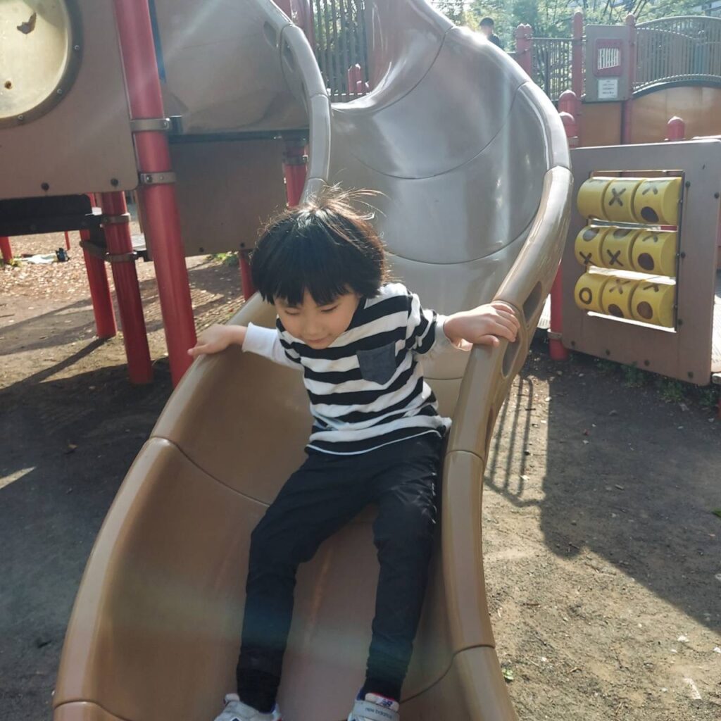 滑り台も余裕ですね。