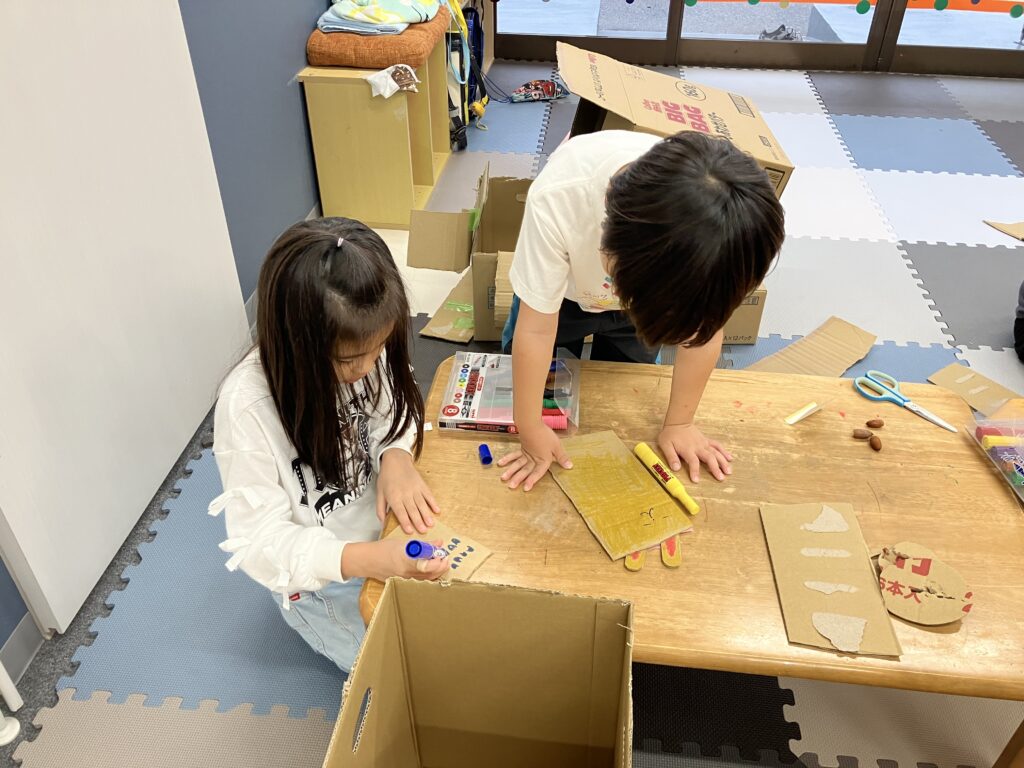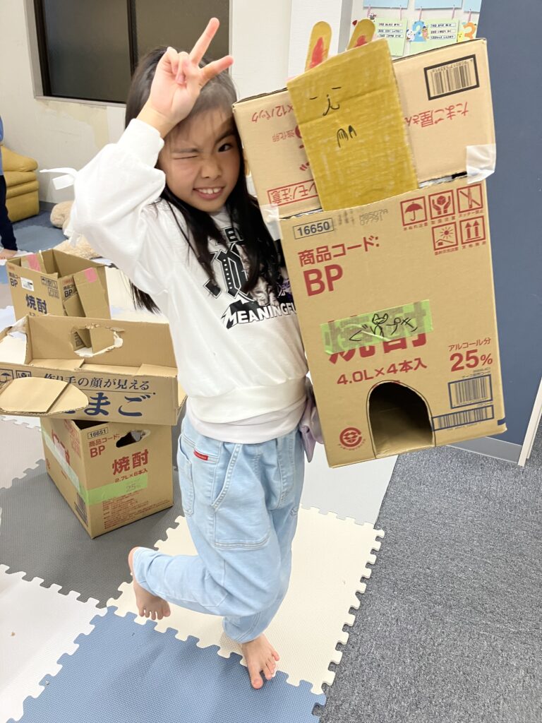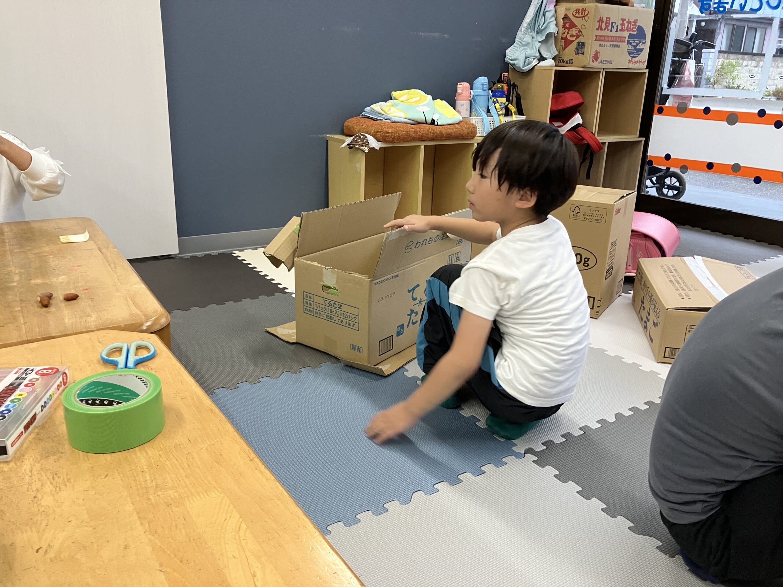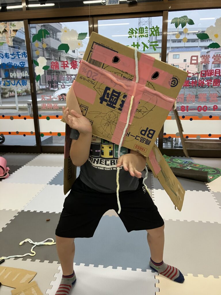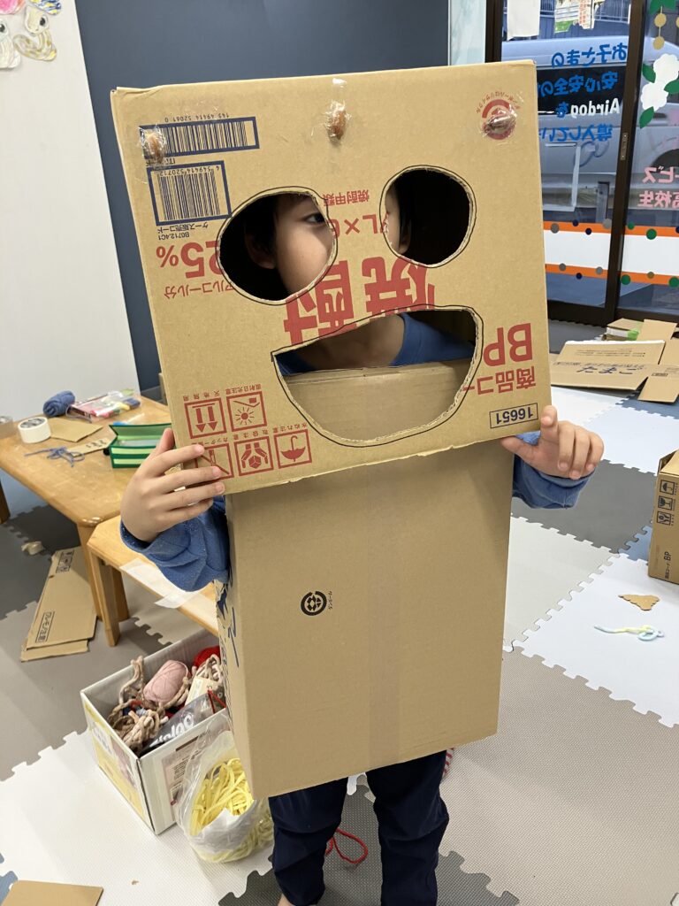段ボール工作 10月16日 みんなで、マルエツで段ボールを貰いに行き、作製をしました。 戦車を作成中。 ロボットを作りましたが、前が見えないそうです。 上手く、出来ましたね。 お友達のお手伝いをしてくれています。 猫の家です。 10月15日の様子 ハロウィンマント作り 10月21日
