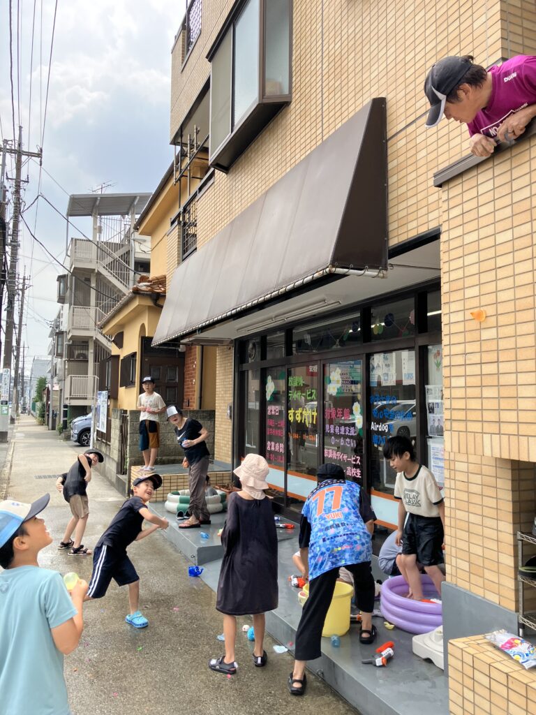 水を一杯浴びましょう。8月22日 2人で仲良く、浸かっています。 風船爆弾の用意をしてくれました。 みんなに風船爆弾を配ってくれています。 これは、なんでですかね。 風船を膨らませています。 これから、攻撃が始まりますよ。 2階から風船爆弾を投下中。 生田ふれあい広場へ(多摩区生田)8月21日 夏休み最後の水合戦 8月25日