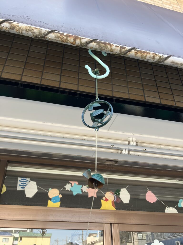 玄関前に風鈴を吊るして、風鈴の音を聞いてもらっています。