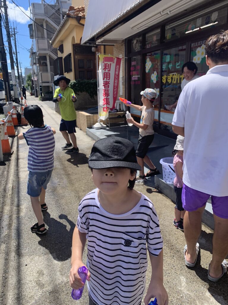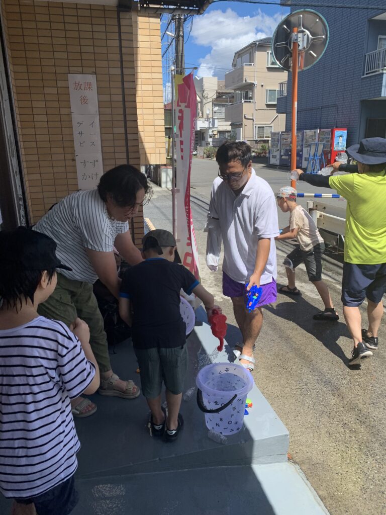 水遊びにはいい天気だ。8月25日(午前) ボランティアの方も参加してくれました。 小学生に攻撃されています。 ペットボトル攻撃 冷たくて気持ちいいね。 小さな戦士です。 等々力不動尊へ(世田谷区等々力)8月24日 道路工事の方にかき氷をプレゼント 8月25日(午後)