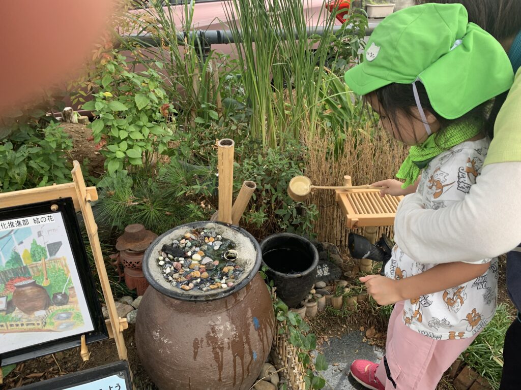 石の上に水をかけて、穴に水が入ると涼しい音がしてきますよ。