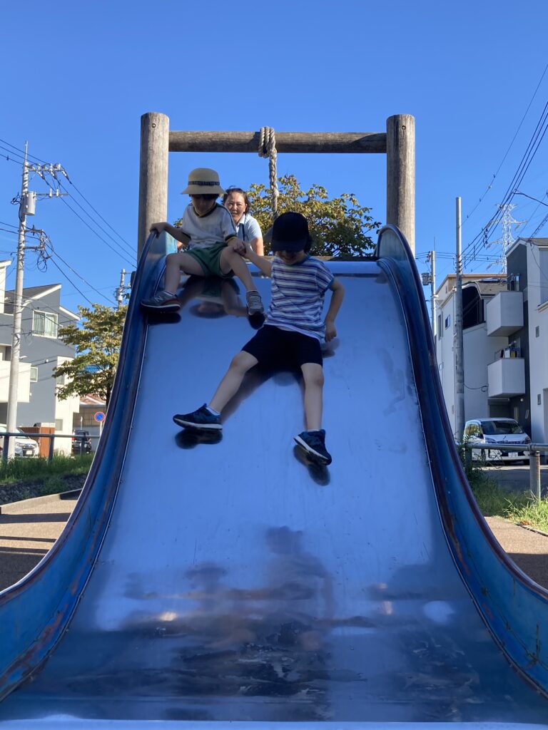 江川せせらぎ遊歩道散歩 9月5日(午後) 怖くて、足で停めながら滑ります。 川に飛び込むのですか。水が好きですね。 帰りにみんなのお菓子を買いに行きました。 スパイダーマン登場 8月30日 9月6日の様子