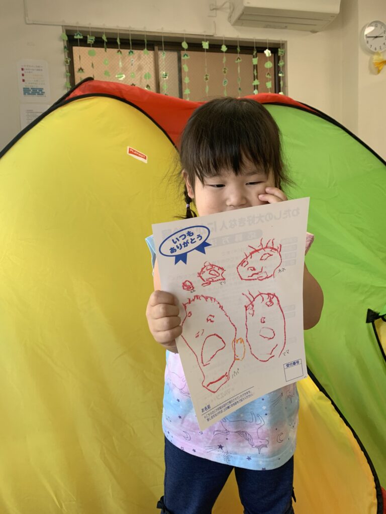父の日似顔絵を描きました。5月24日午後 本人の話しでは、お父さんだそうです。 家族全員とスタッフを描きました。 お父さんに似ているかも。 顔になっているね、独特な絵ですね。今回も、マルエツ子母口店に掲示されます。 あじさいを見に行きました。5月24日午前 5月24日 午後の様子