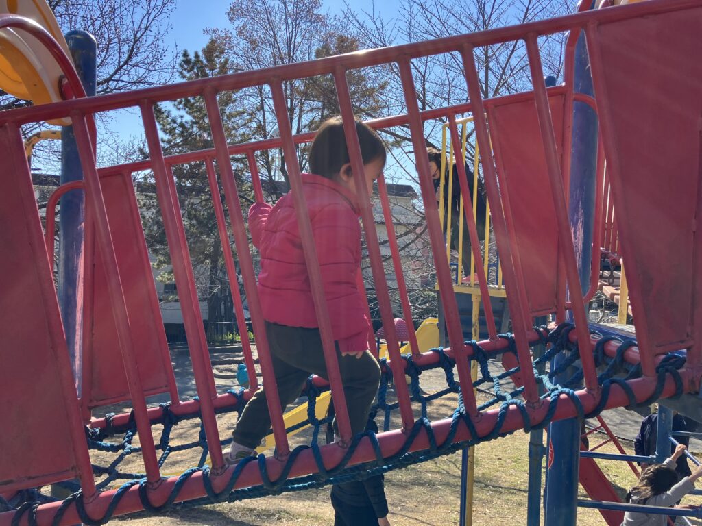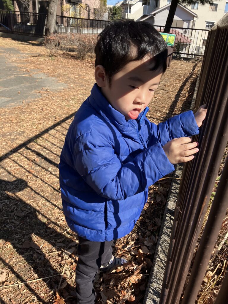 稲荷谷公園(青葉区荏田北)へ 1月22日午前 田園都市線江田駅にある稲荷谷公園に行きました。 着地成功 網の上も、怖がらずに歩きました。 柵につかまりながら、歩きました。滑り台は、強い抵抗で拒否されました。 一休み 1月21日の様子 お誕生日おめでとう。1月22日