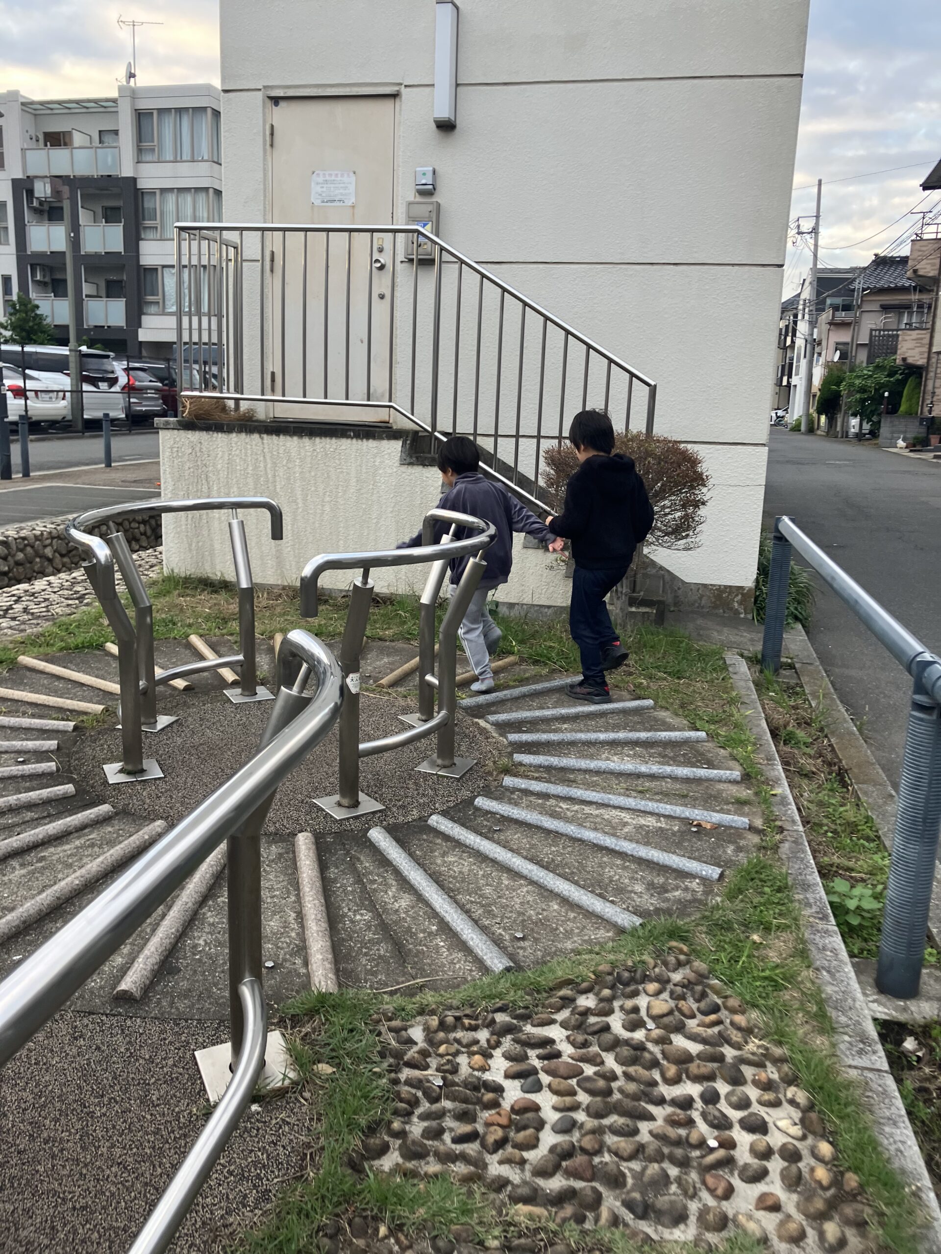 足つぼに挑戦しました。10月23日 せせらぎ遊歩道にある足つぼを歩いてみました。痛いようで、ゆっくり歩いています。 走って、早く行きたいようです。靴を脱いでいませんね。 痛さは、感じないようです。 落ちないないでくださいね。 ハロウィンマント作り 10月22日 橘公園へ 10月27日