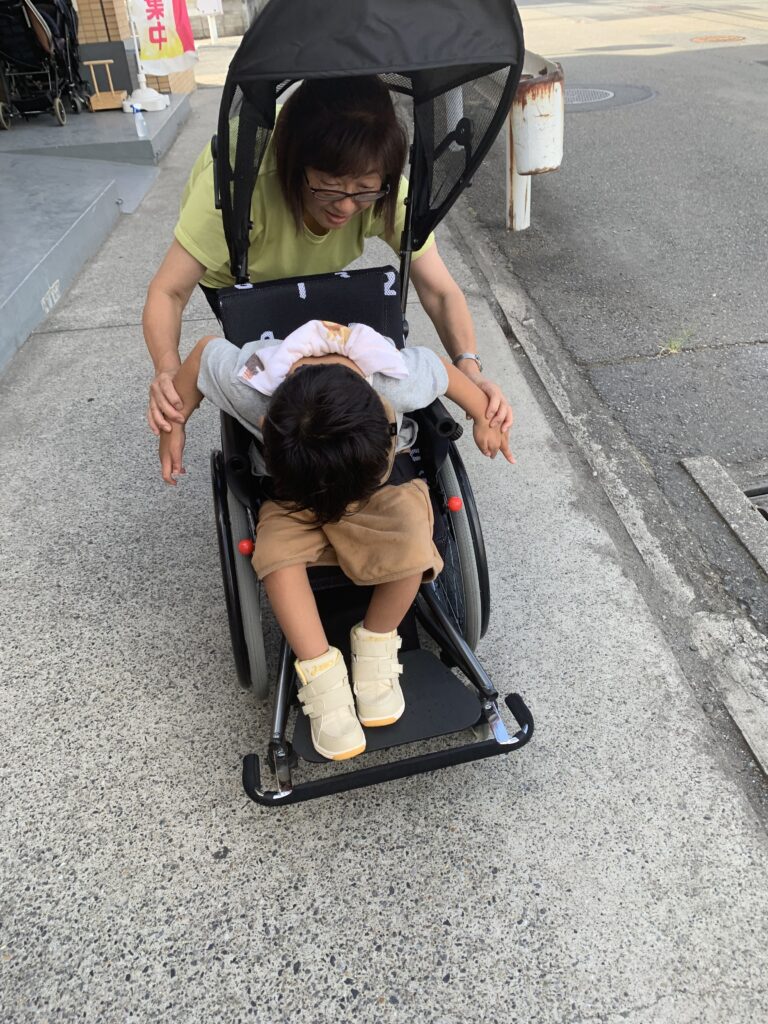 車椅子の練習をしました。7月31日 まずは、車輪に手を置くところから始めました。 前を向いてよ。 スタッフのお腹の赤ちゃんを優しく撫でてくれました。 鷺沼公園へ(宮前区鷺沼)7月31日(午前) 電車とバスの博物館に行きました。(宮前区宮崎台)8月...