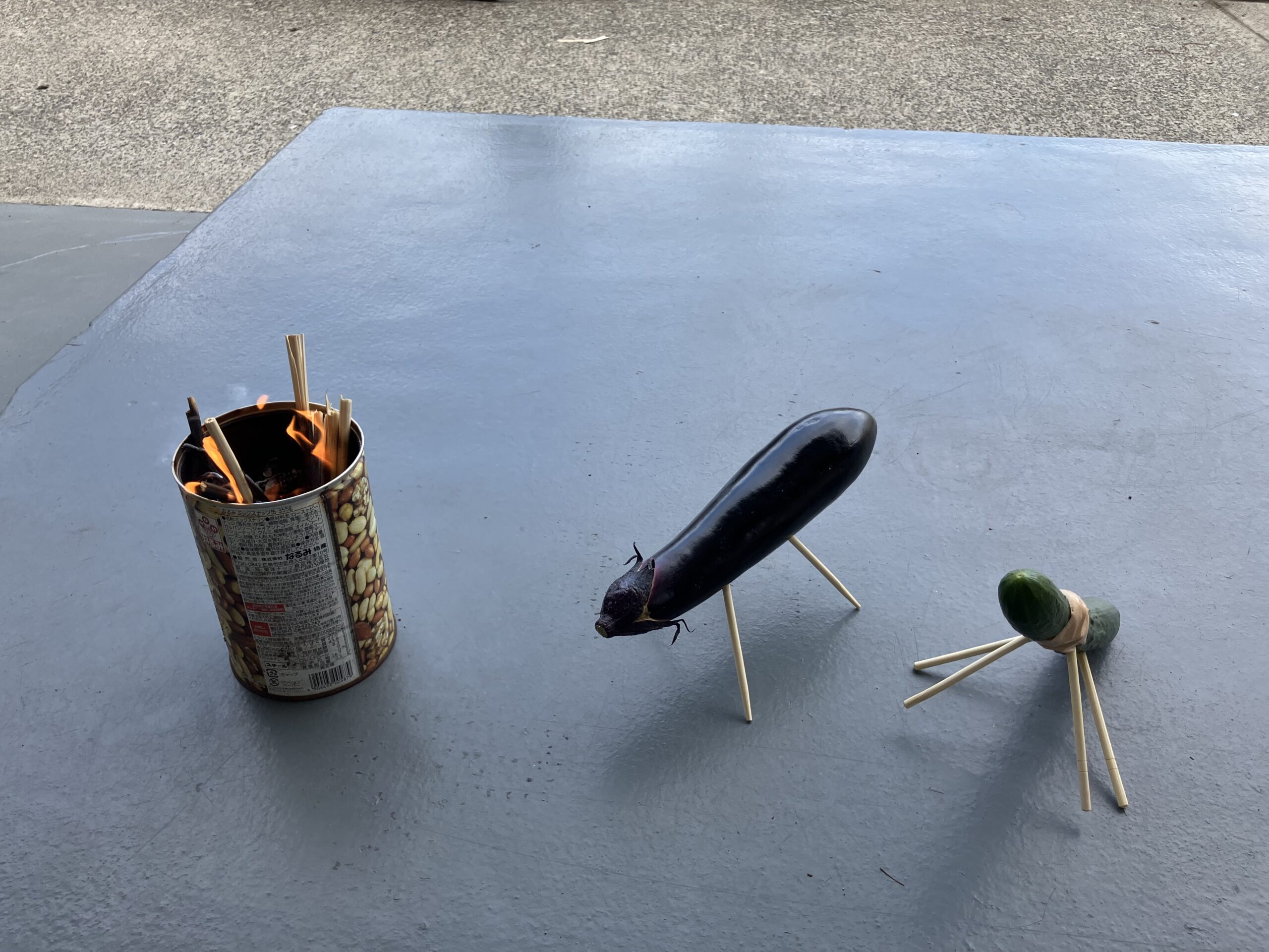 迎え火 8月13日 馬が来る途中に骨折してしまいました。これから、関東労災に受診予定です。 みんなで、お迎えしました。 線香花火でも、お迎えしました。 川崎大師~大師公園へ 8月13日(午前) 染物体験 8月13日