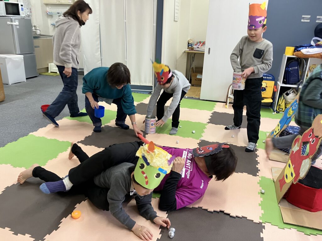 豆まきではなく、鬼合戦だね。