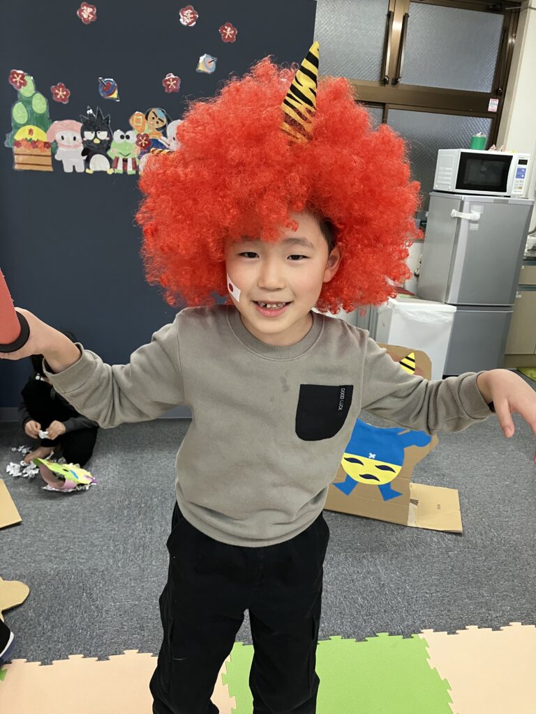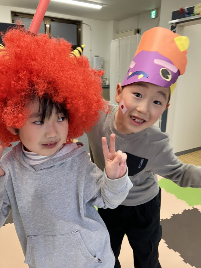最後は、鬼と仲直りしました。顔は引きつっていますけど。