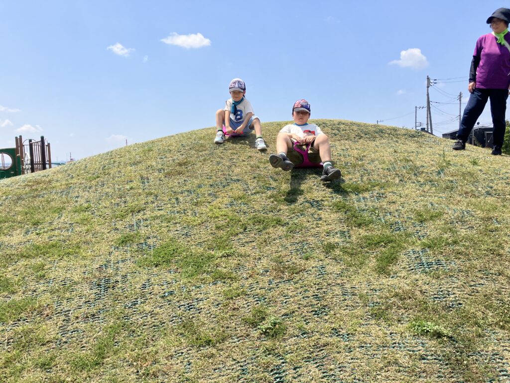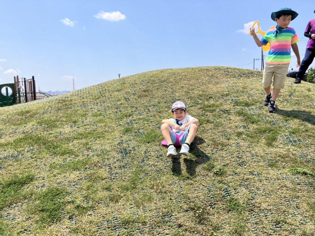 山を滑ってみました。お尻が痛いよ。