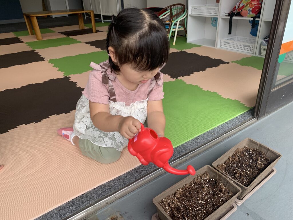 公園に行く前に向日葵に水やりをしました。