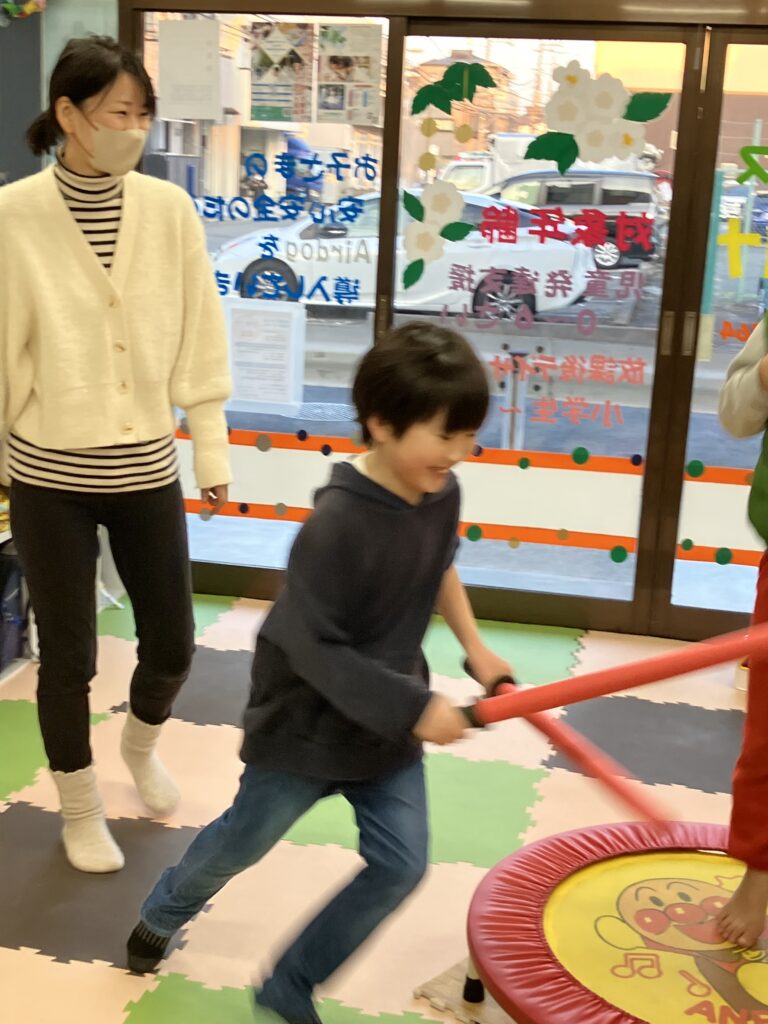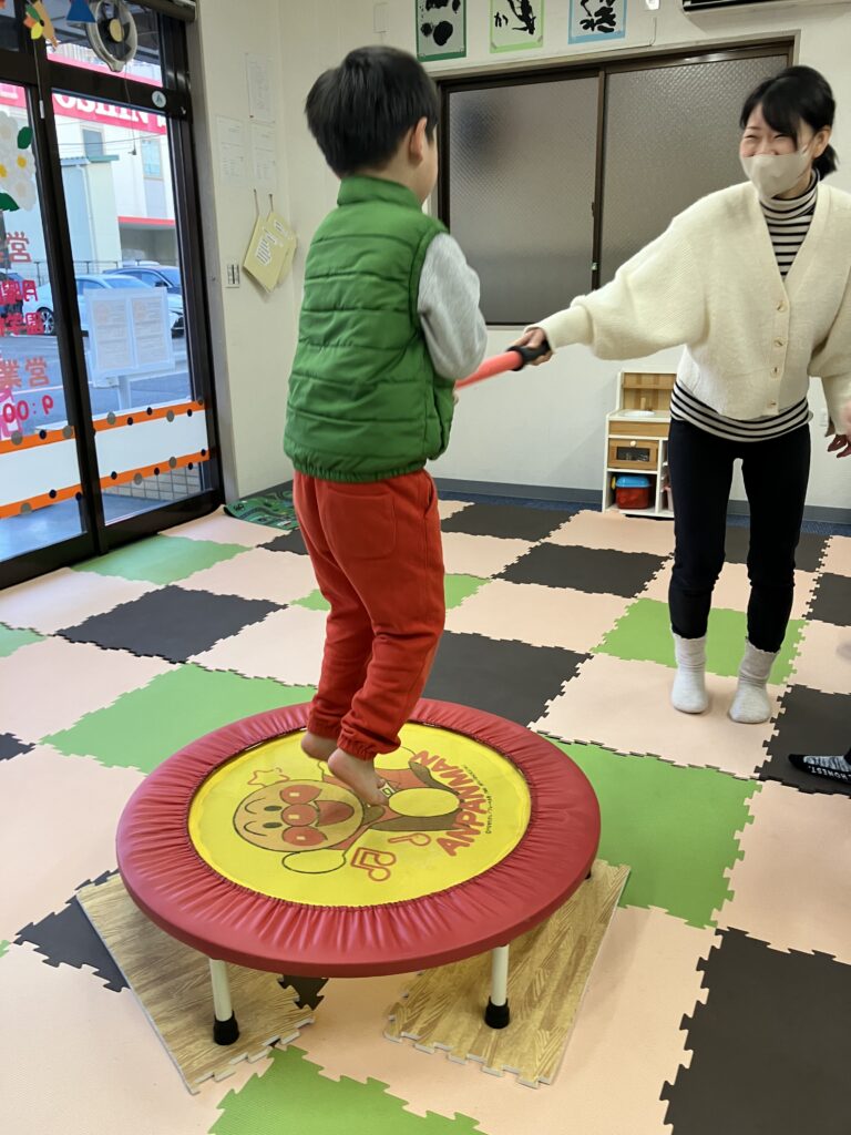 トランポリンで高く跳ぶことが出来ます。