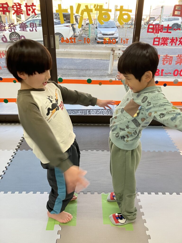 楽しそうに相撲をしていました。