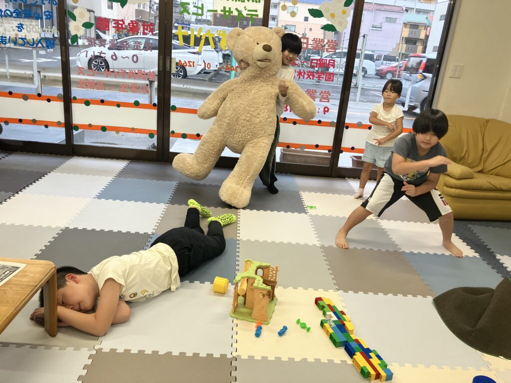 10月1日の様子 午前中は、川崎市役所展望台に行きました。 小学生による音楽に合わせて、ダンスが始まりました。(午後) 熊も一緒に踊っています。一人は、疲れたそうです。 8月27日の様子 せせらぎ遊歩道(10月3日)