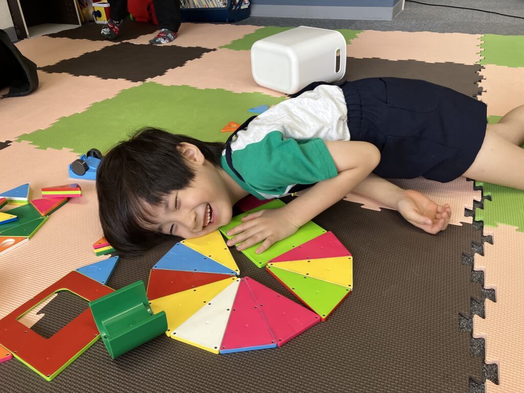 仲良く積み木遊び。