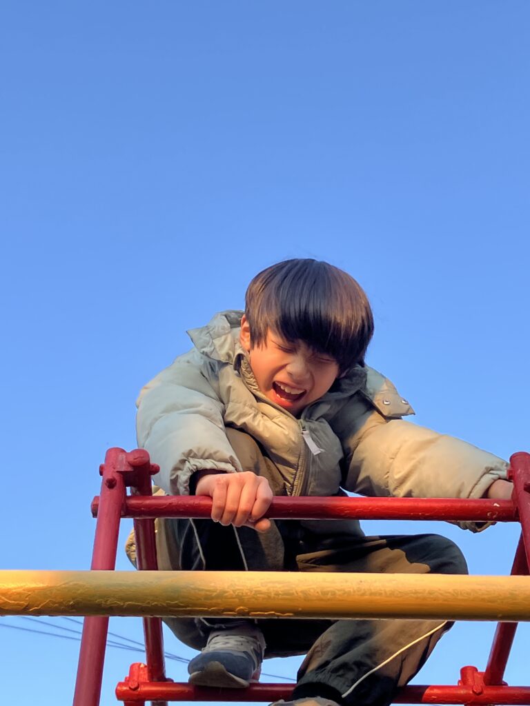 ジャングルジムの上で、吠えていました。
