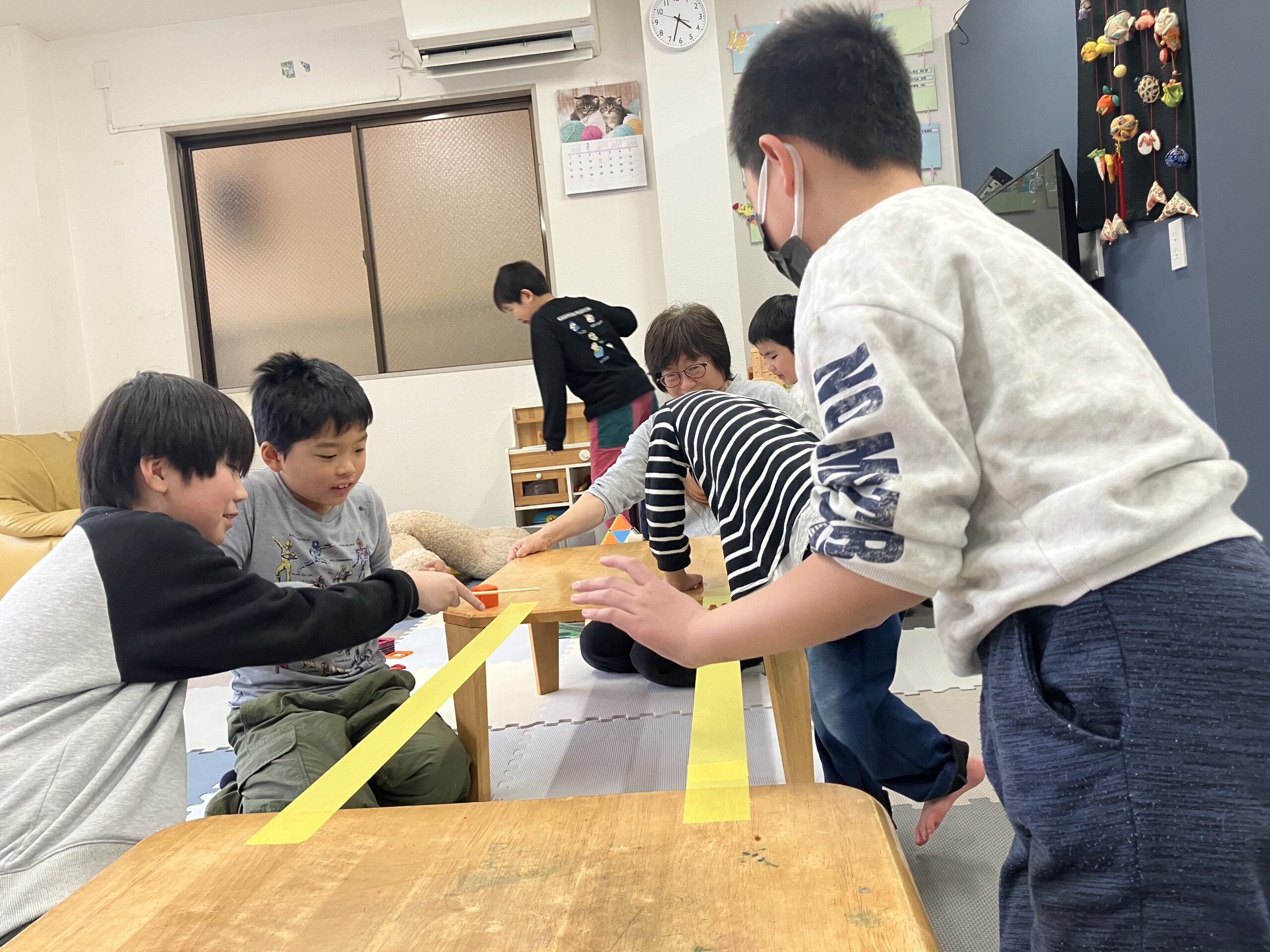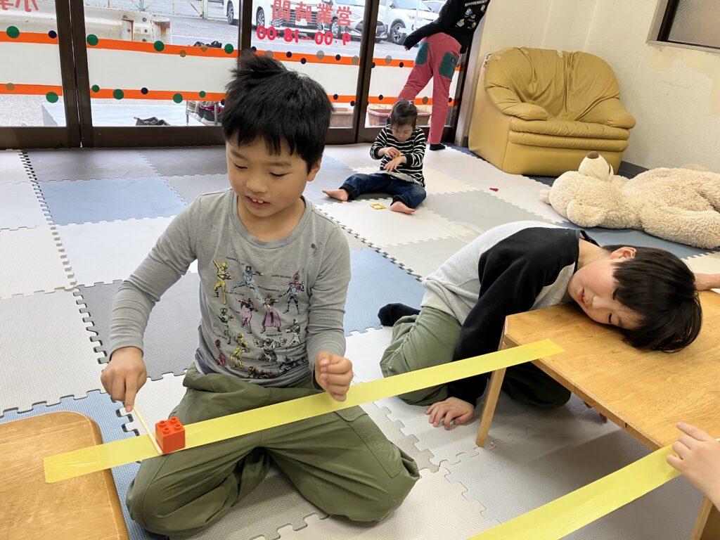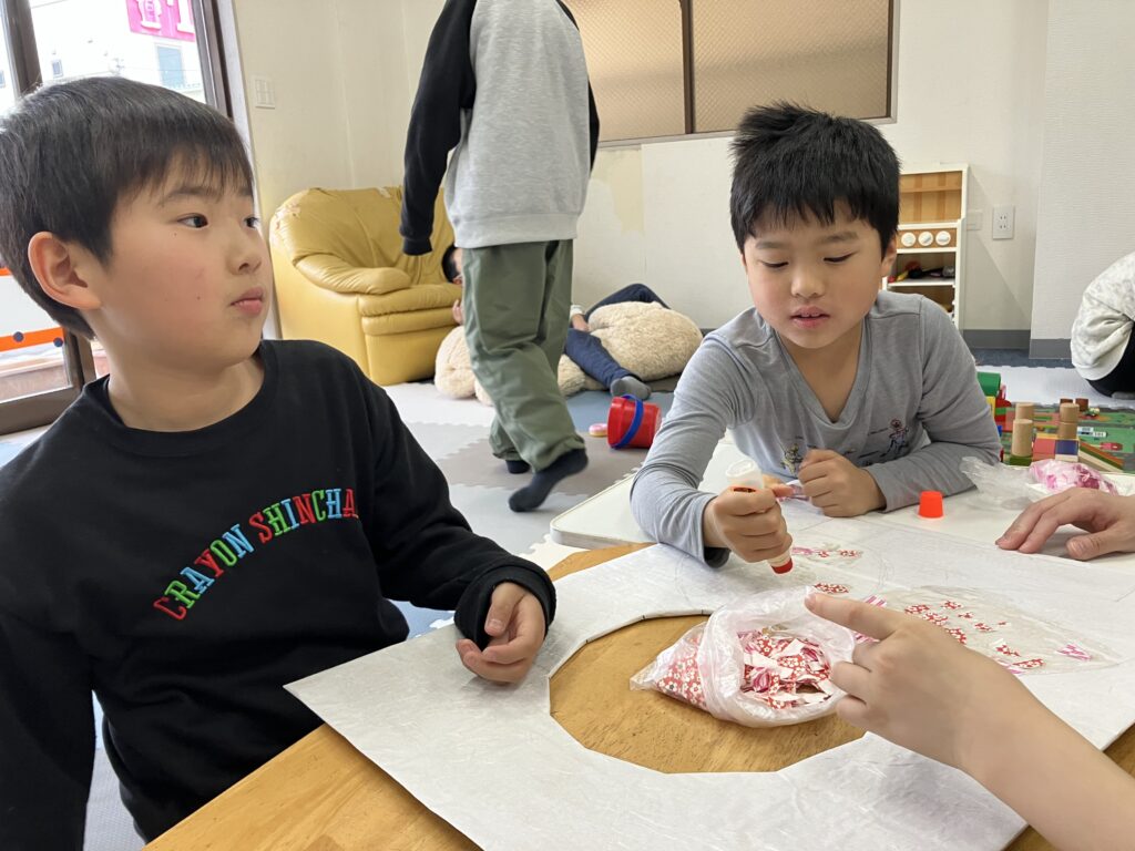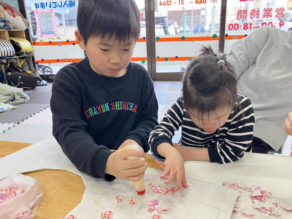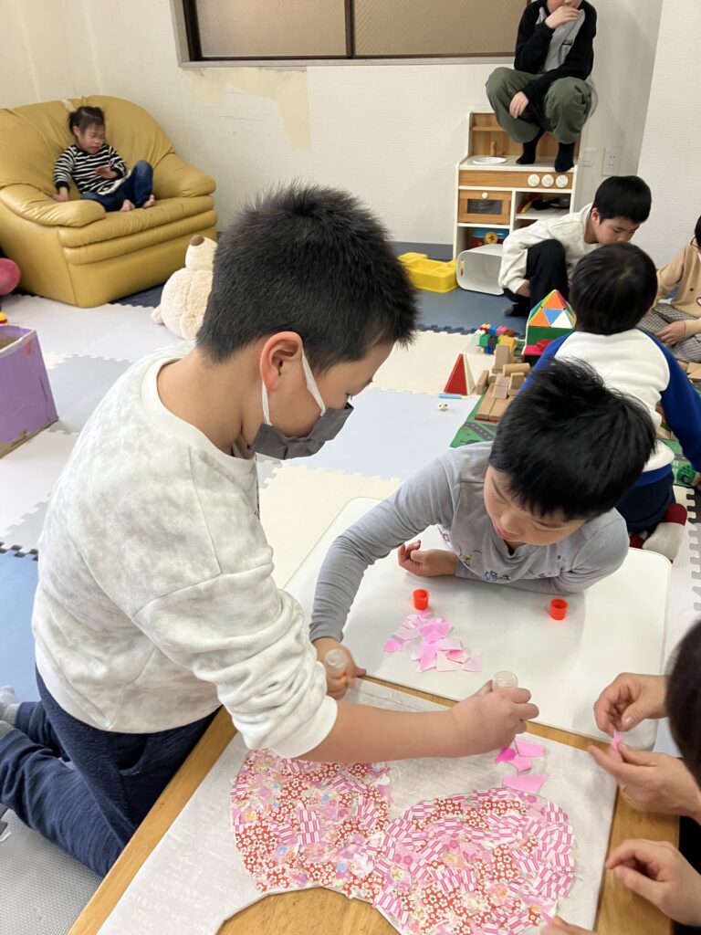 2月27日の様子 ひな祭り飾り制作中。 のり係と貼る係。 綺麗な飾りになってきましたね。 ブロックを落とさないように運んでね。 手で押さえていますよ。 お誕生日おめでとうございます。 梶ヶ谷第一公園へ 2月26日 3月2日の様子