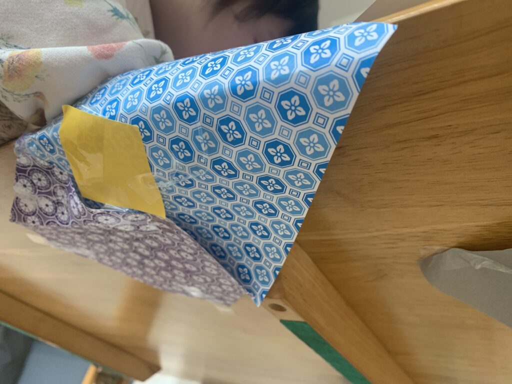 折り紙でテーブルの裏までをラッピングしてくれました。題名は、なんですか。